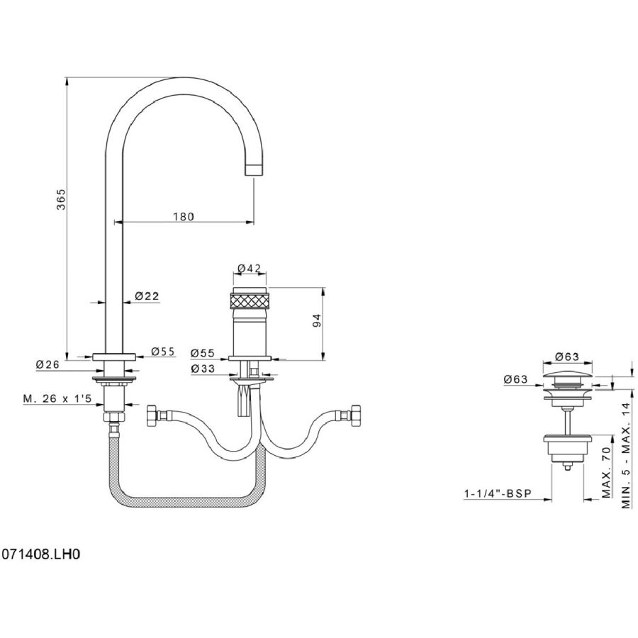 Bronces Mestre / Washbasin Fittings / Three holes basin set 072001.000.50