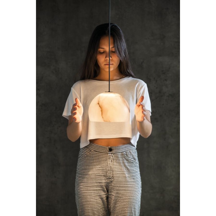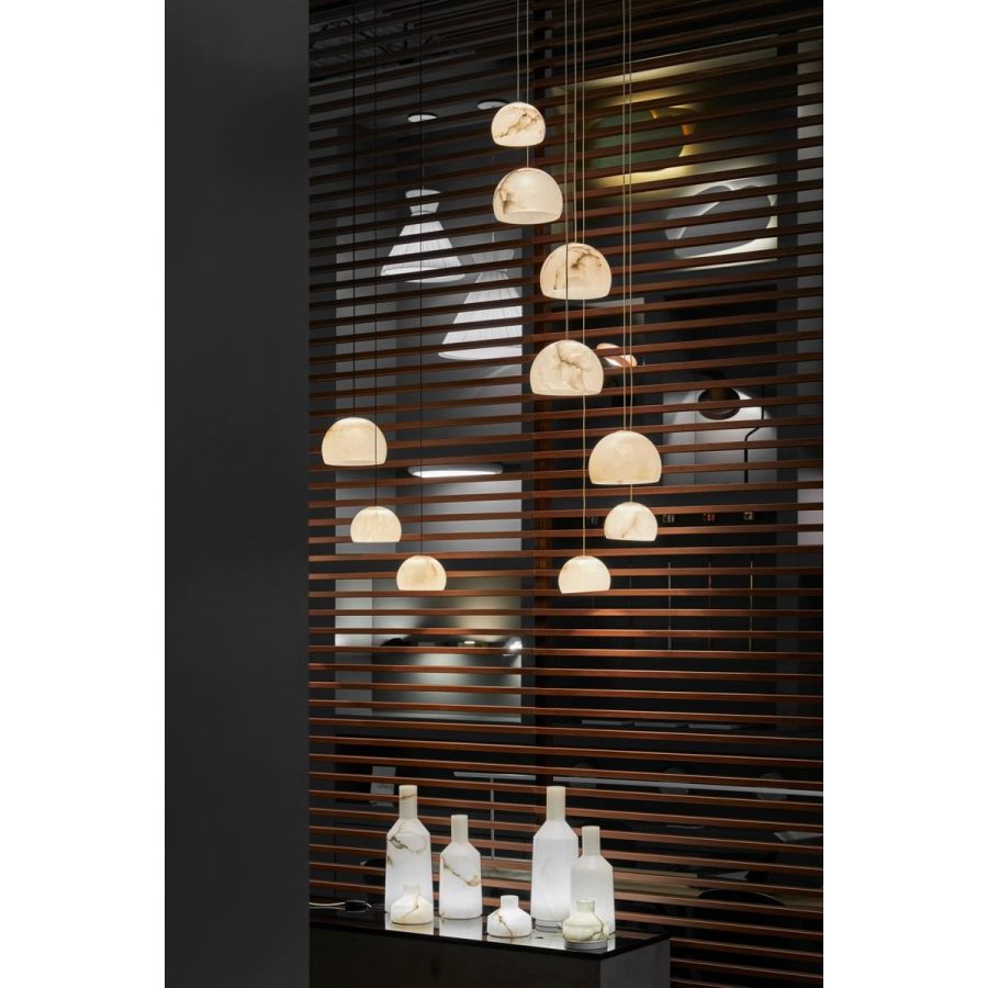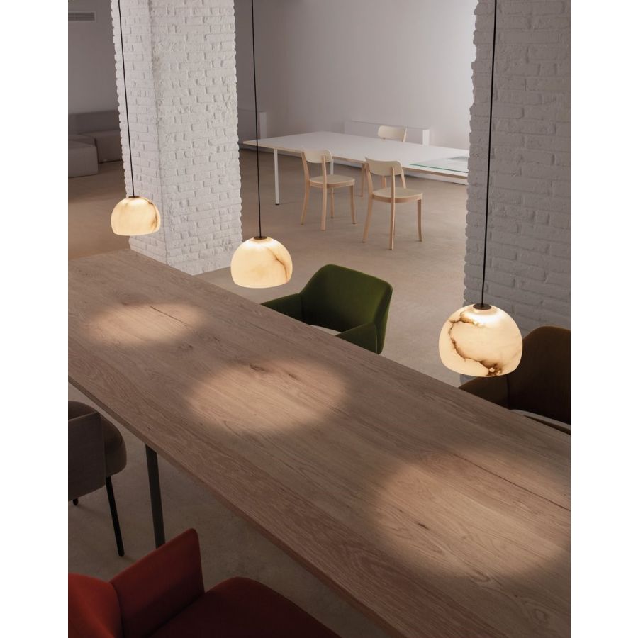 Designing an alabaster lamp is a challenge that Neil resolves with mastery. Using noble materials and minimal processes, this piece captures the essence of alabaster—a material that, when combined with LED technology, achieves unmatched transparency. Neil stands out for its pure form and its light, which evokes an almost lunar atmosphere, making it ideal for any space that needs a unique and timeless touch.