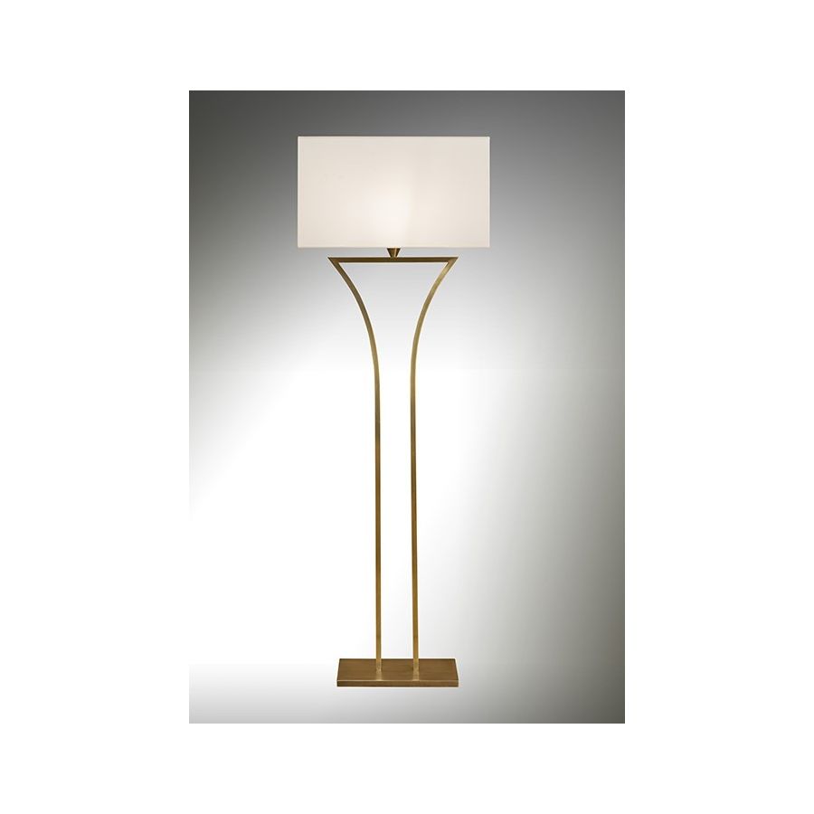 Floor lamp made in brass It is made with two square tubes forming harmonious curbs on a rectangular base This floor lamp with an elegant design nicely decorates a living room, a bedroom or an office Available in black or matt gold patina Presented rectangular shade in white cream chintz (see other available shapes and colors).