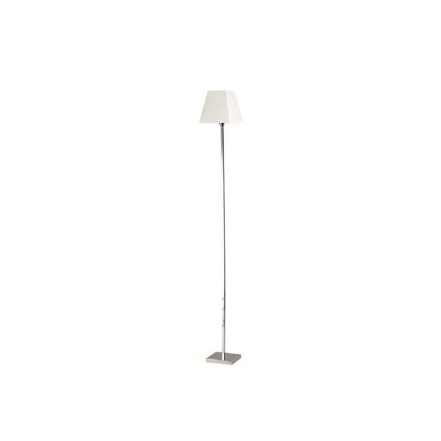 Floor lamp in brass. Made with a square tube on a square base. This sober and elegant floor lamp remains discrete in your interior. Available in black or matt gold patina, and in nickel. Also exists in small (LD58A) or medium size (LD58B). Presented lamp shade in white cotton chintz in a pyramidal tapered shape (see other available shapes and colours).