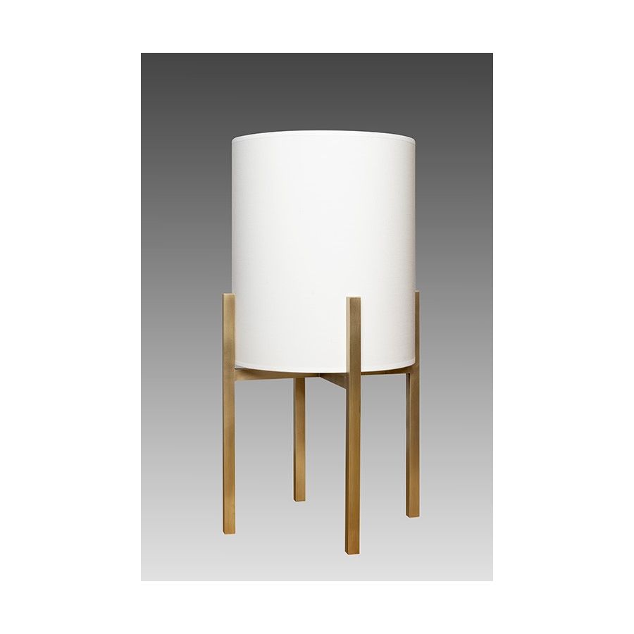 Lamp in brass. Made with 4 vertical square tubes, joined in their middle by 2 crossed tubes. This contemporary lamp gives an original design to your interior. Available in black or matt gold patina. Presented lamp shade in white cotton chintz in a cylindrical shape (see other available colours).