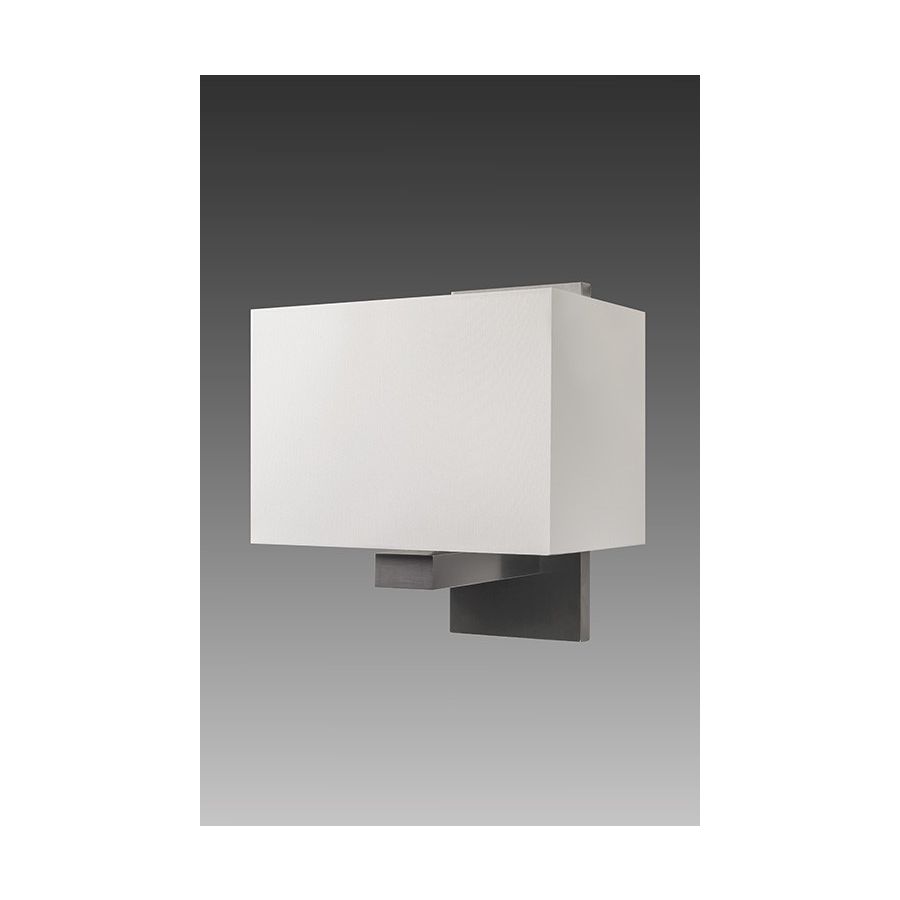 Wall light made in brass. Made with a fixed arm on a wide rectangular base. This wall light gives a touch of elegance to your interior. Available in black or matt gold patina, and in nickel or brushed nickel. Presented lamp shade in white cotton chintz in a rectangular shape (see other available shapes and colours).