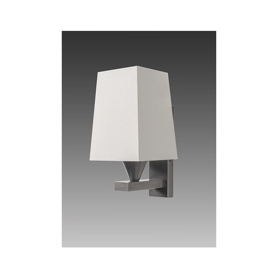 Wall light made in brass. Made with a fixed arm on a rectangular base. This simple and elegant wall light discretely fits into your interior. Available in black or matt gold patina. Presented lamp shade in white cotton chintz in a tapered rectangular shape (see other available shapes and colours).