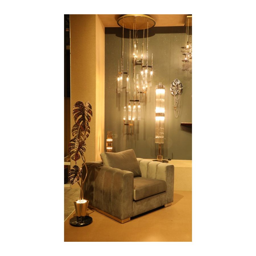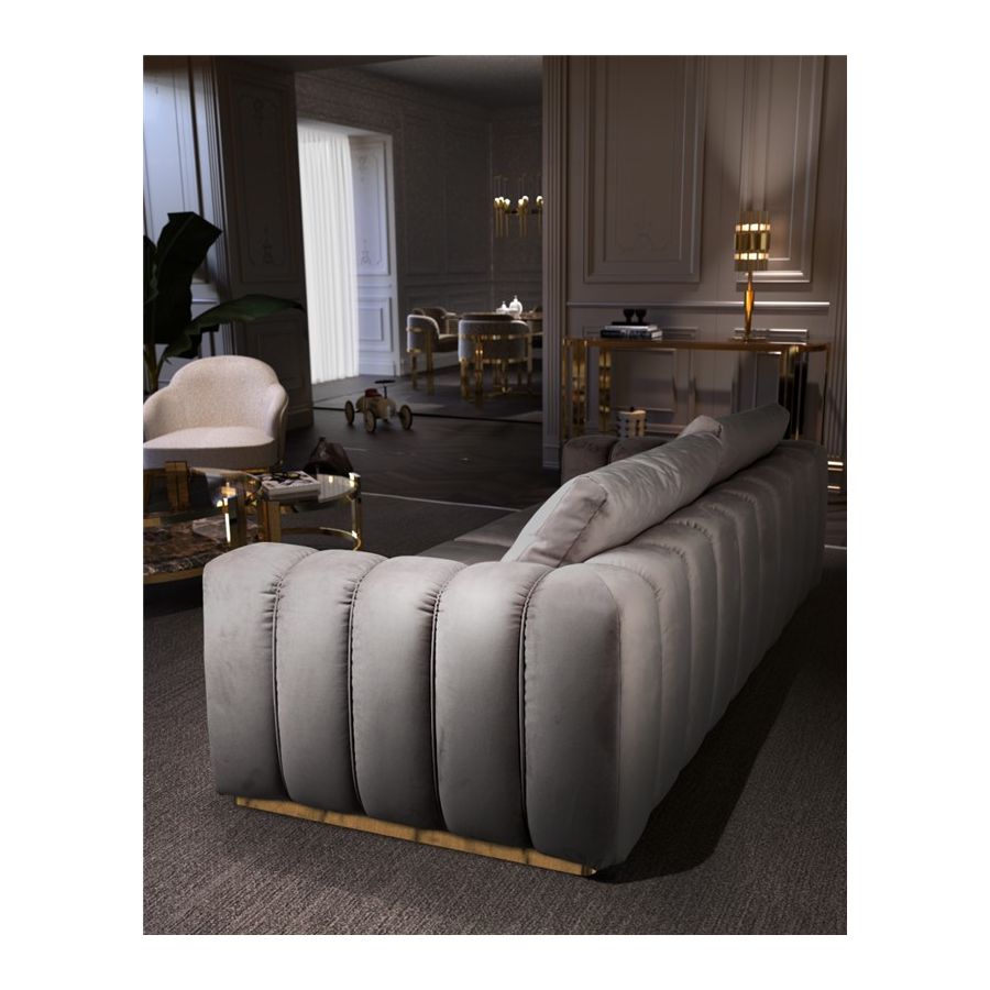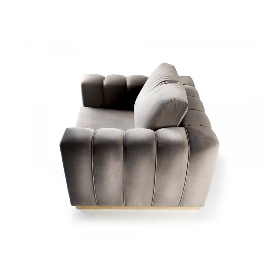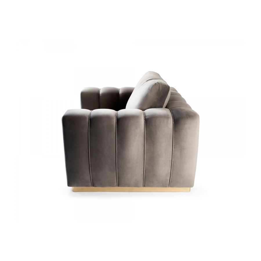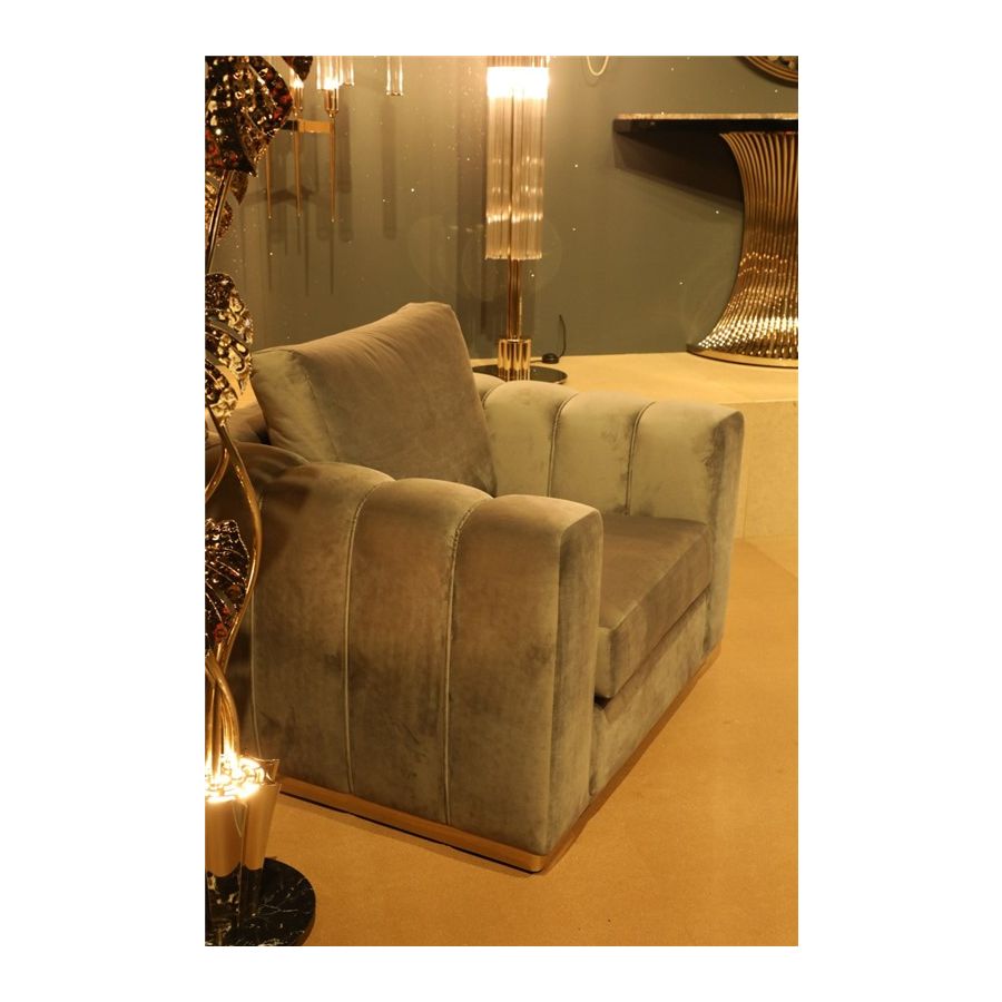 Denna stiliga lönn, designad för lyxig komfort och en avslappnad atmosfär, är inramad av guldpläterad mässing applicerad för hand. Colombos signaturdetalj är en kraftig rygg, uppbyggd av mjuka kuddar åtskilda från ramen, samt armstöd som visuellt är uppdelade av vertikala linjer som ger denna skräddarsydda möbel ett gudomligt utseende. Den är skapad för att vara din favoritplats att koppla av och ladda batterierna. Mjuka avkopplingsmöbler med bekväma kuddar syftar till att erbjuda en lugn tillflyktsort och ger en belönande blandning av tidlös elegans och ett modernt inslag till ditt hem. Inred vardagsrummet med denna exklusiva design och låt dig estetiskt inspireras av dess delikata lockelse och kosmopolitiska utseende.