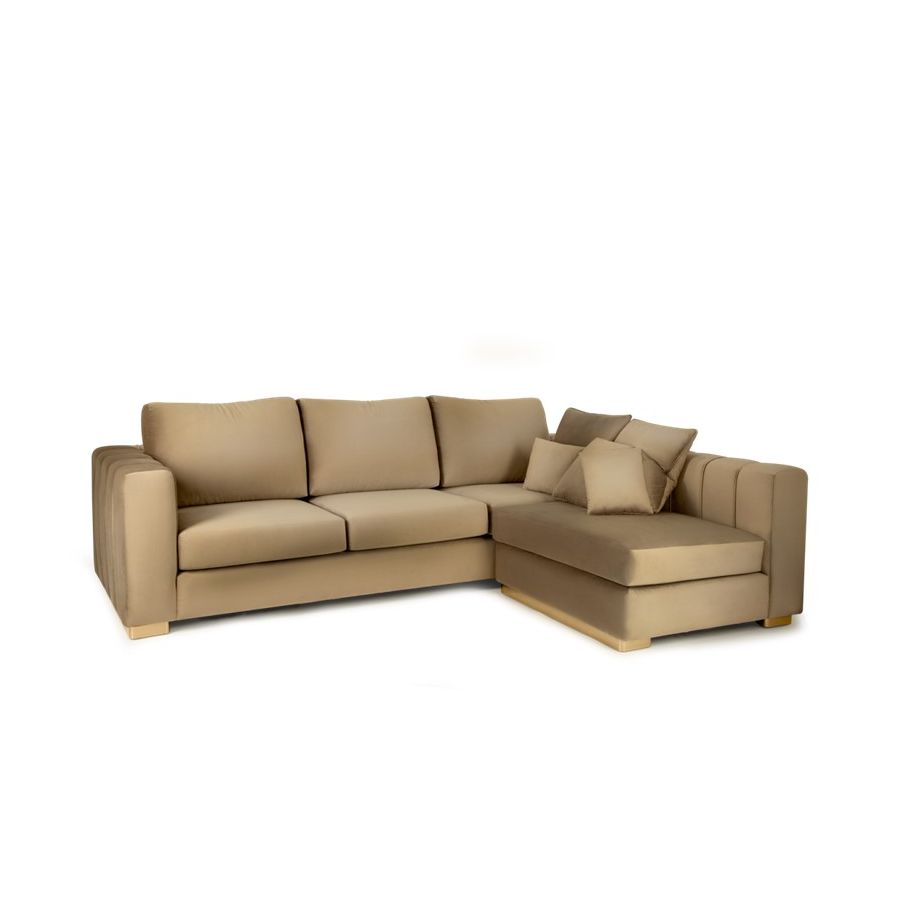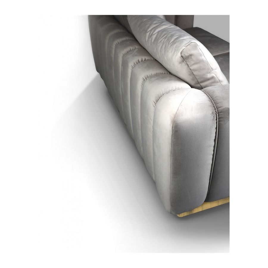 Denna stiliga loungesoffa, designad för lyxig komfort och en avslappnad atmosfär, är inramad av guldpläterad mässing som applicerats för hand. Colombos signaturdetalj är en kraftig rygg utformad av mjuka kuddar separerade från ramen, samt dess armstöd som visuellt delas upp av vertikala linjer som ger denna skräddarsydda möbel ett gudomligt utseende. Den är skapad för att bli din favoritplats för att koppla av och ladda batterierna. Mjuka lounge-möbler med bekväma kuddar syftar till att erbjuda en tyst tillflyktsort och erbjuder en givande blandning av tidlös elegans och en fashionabel tvist till ditt hem. Inred vardagsrummet med denna exklusiva design och låt dig estetiskt inspireras av dess delikata lockelse och kosmopolitiska utseende.