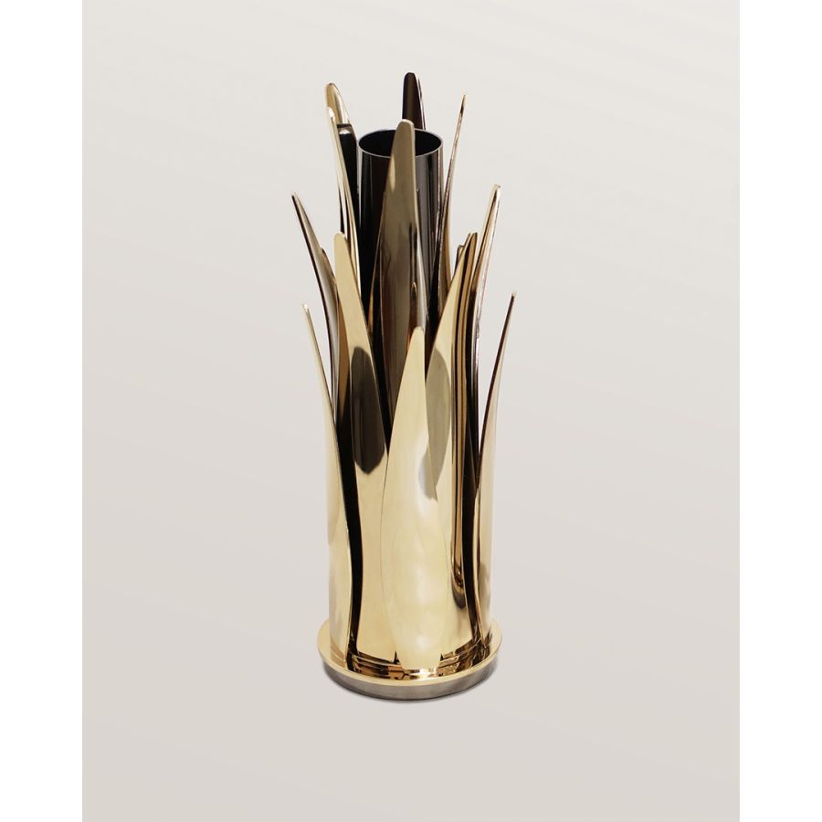 Denna eleganta dekorativa vas skapades för att förhöja lyxiga interiörer med sin enkelhet och sofistikering. Castro är känt för sitt unika hantverk, sin extraordinära kvalitet och sin oöverträffade skönhet inom mässingshantverk. Äktheten i traditionella portugisiska metallbearbetningstekniker, kreativt hantverk och konstnärlig design är tydlig i skapandet av denna utsökta vas.