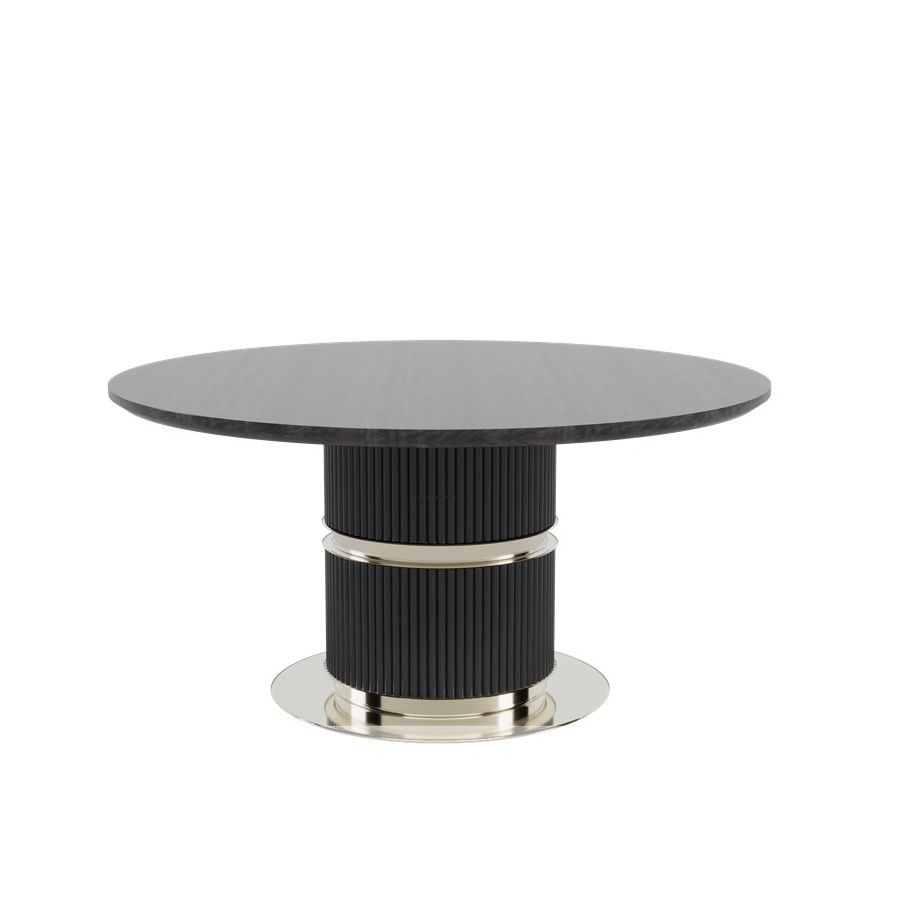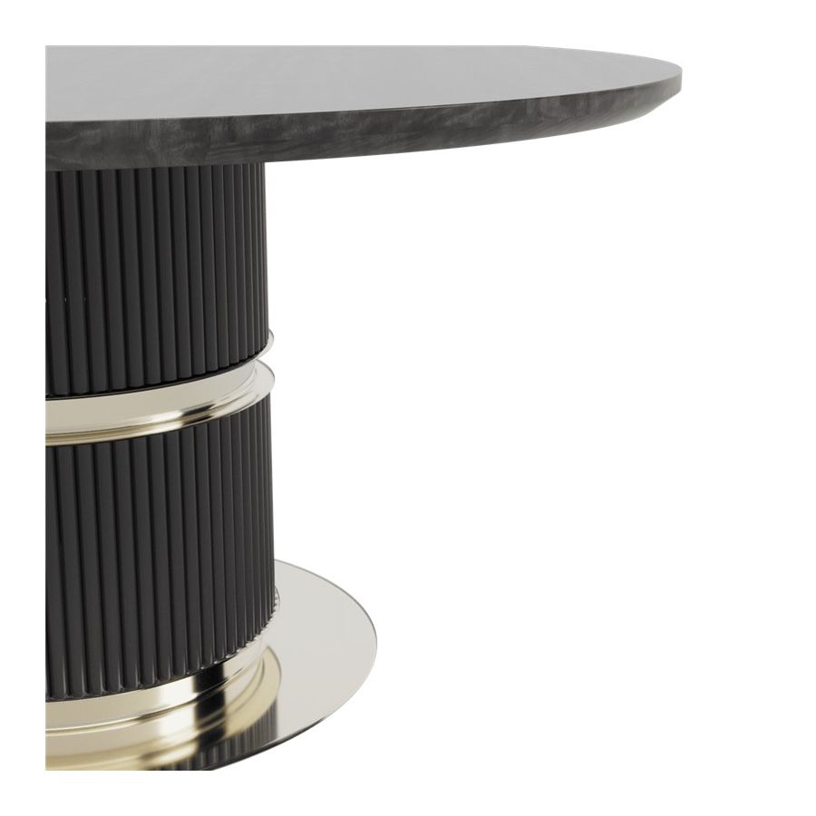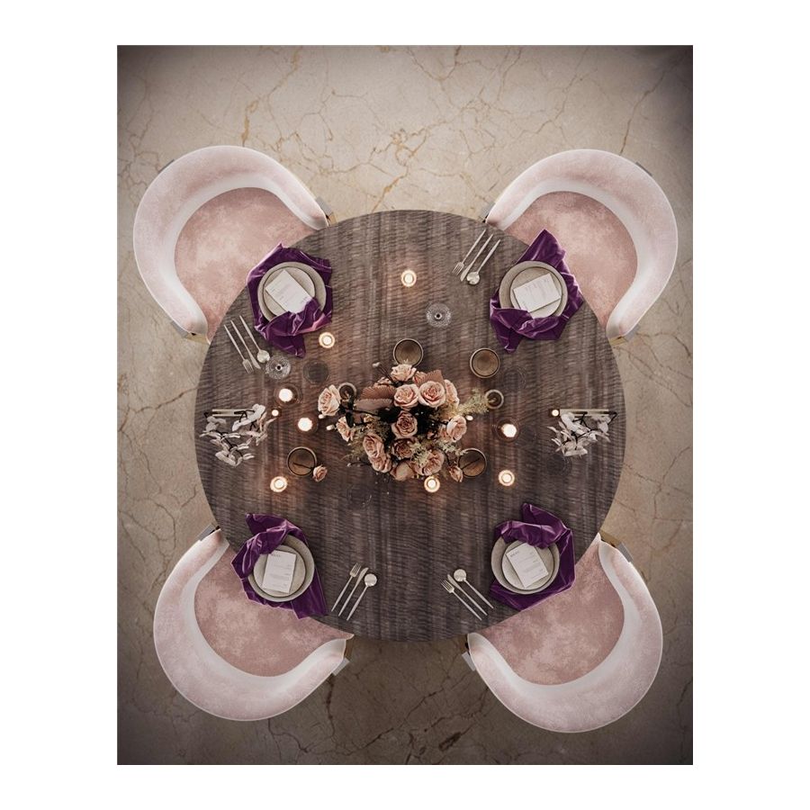 Njut av sofistikeringen hos detta magnifika matbord. Eléa förkroppsligar det hellenska konceptet på ett sätt som hyllar det episka antika Grekland och dess rika kultur. Detta bord har en eukalyptus frisé träskiva tillsammans med en slank lackerad mässingsfinish, vilket förvandlar det till den perfekta föreningen av material och formernas harmoni.