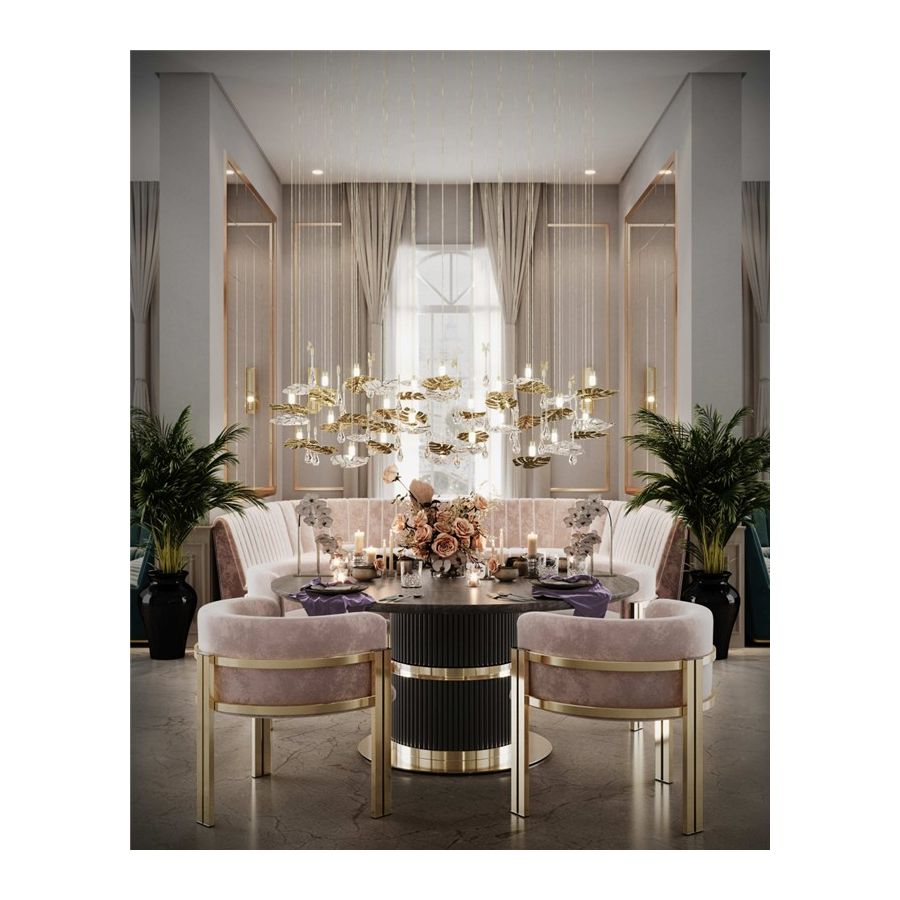 Eléa matbord är ett moderiktigt tillskott till vilket utrymme som helst som briljant fångar en balanserad, mjukt upplyst stil som kommer att lämna dina gäster hänförda över dess skönhet och graciöshet.