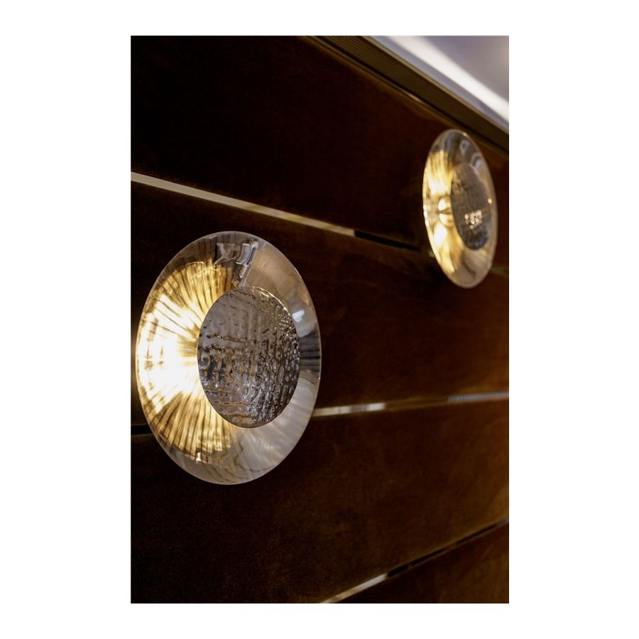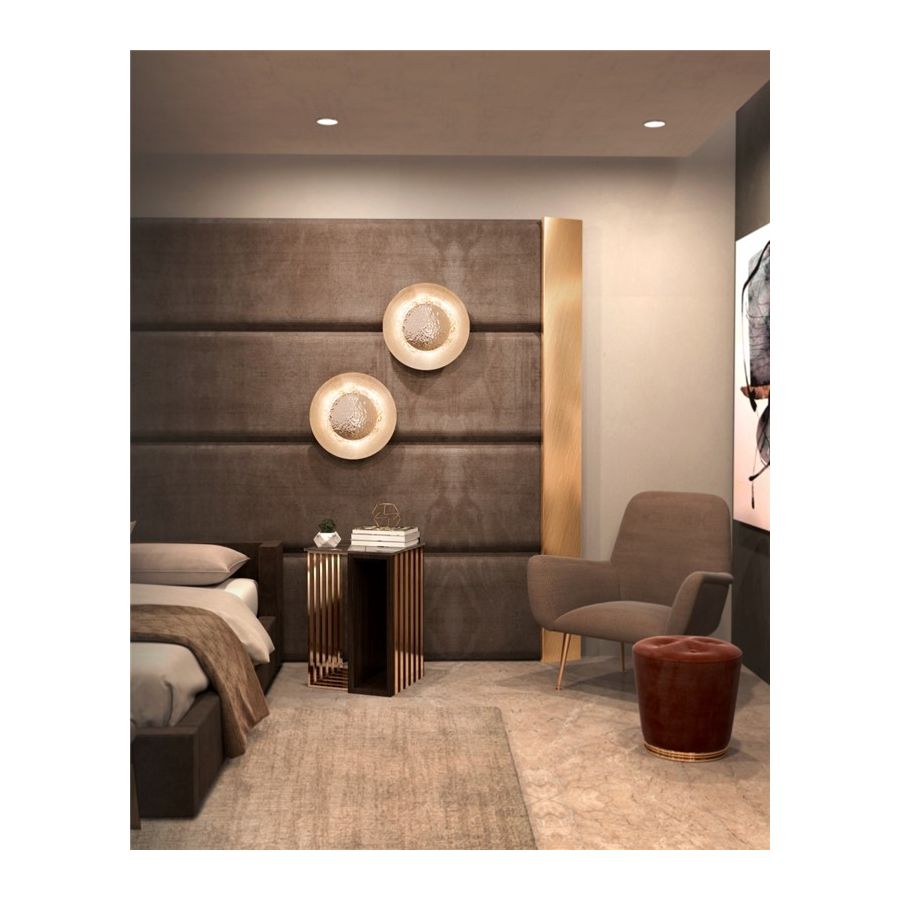 Med inslag av moderna, samtida och mid century modern-stilar, tillsammans med dess delikata lyxiga skärm, är denna handgjorda väggarmatur den perfekta passformen för en hall, ett sovrum, ett vardagsrum eller en matsal, dess varma ljus skapar en lugn och avkopplande atmosfär.
