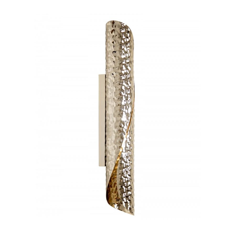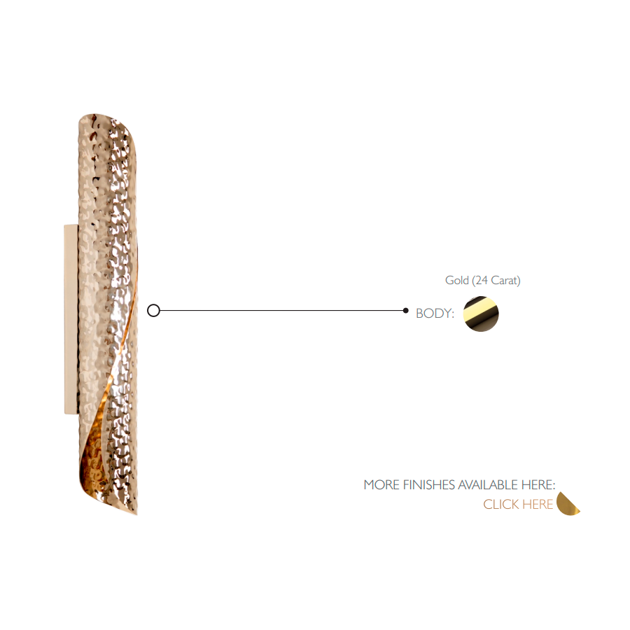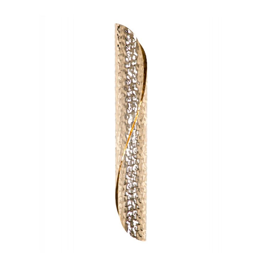 The Elven wall sconce resembles a beautifully balanced curve that twists like a shell, as its gold-plated brass tube is bent and hammered by the hands of experienced craftsmen. Designed to be a breathtaking and glitzy highlight to an interior design project, it combines modern simplicity with an elegant and luxurious touch.