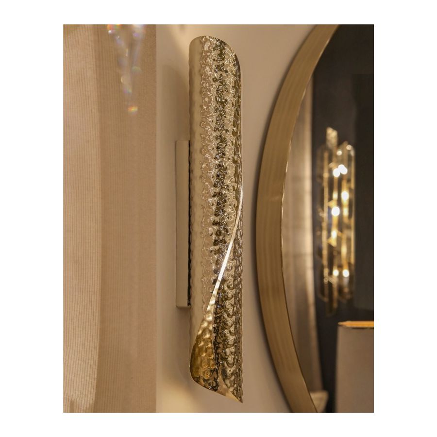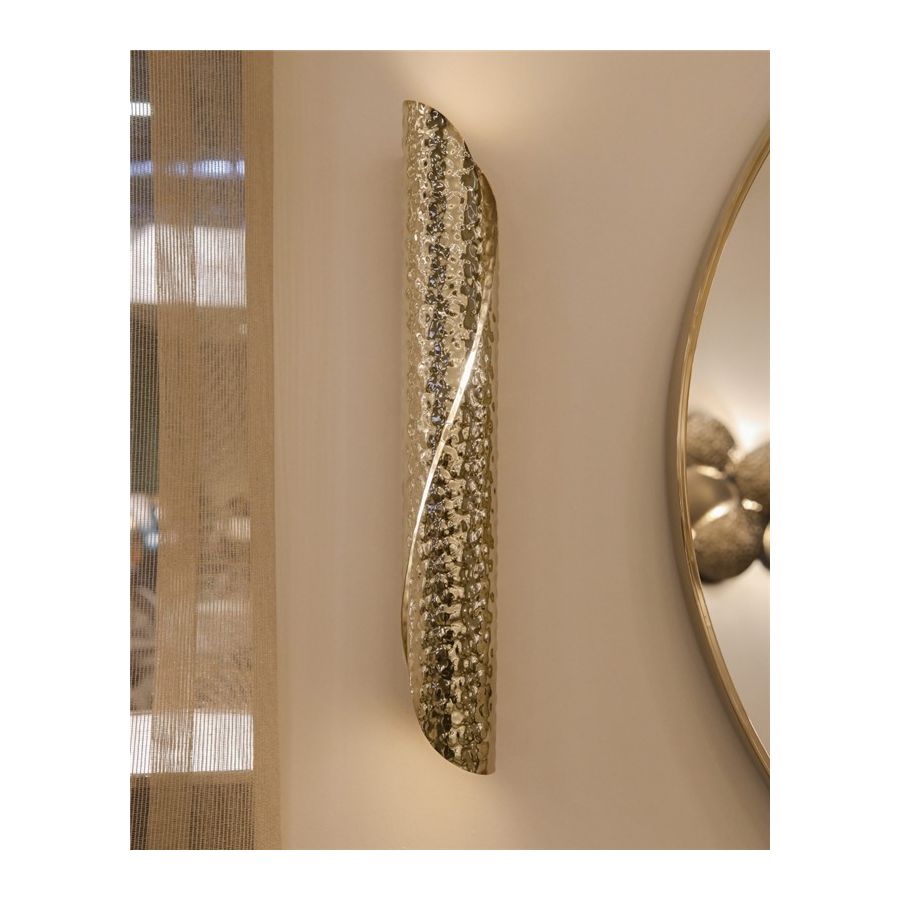 The wall light decoration gives a stunning golden gleam to the interior space, its warm light is spread delicately. This lighting fixture is ideal for a bedroom, living room, and hallways. In commercial spaces, like a restaurant or bar, it can create a more romantic and inviting atmosphere. Explore new lighting design solutions and celebrate opportunities for filling a space in a spectacular way.