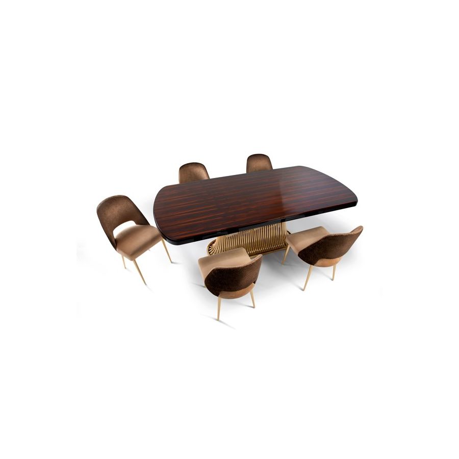 Med en unik design bestående av böjda mässingsrör ger formen intryck av ett kontinuerligt flöde. Flusso-matbordet tillför en känsla av lockelse till alla hemmiljöer och en känsla av mystik till de mest utsökta inredningarna.