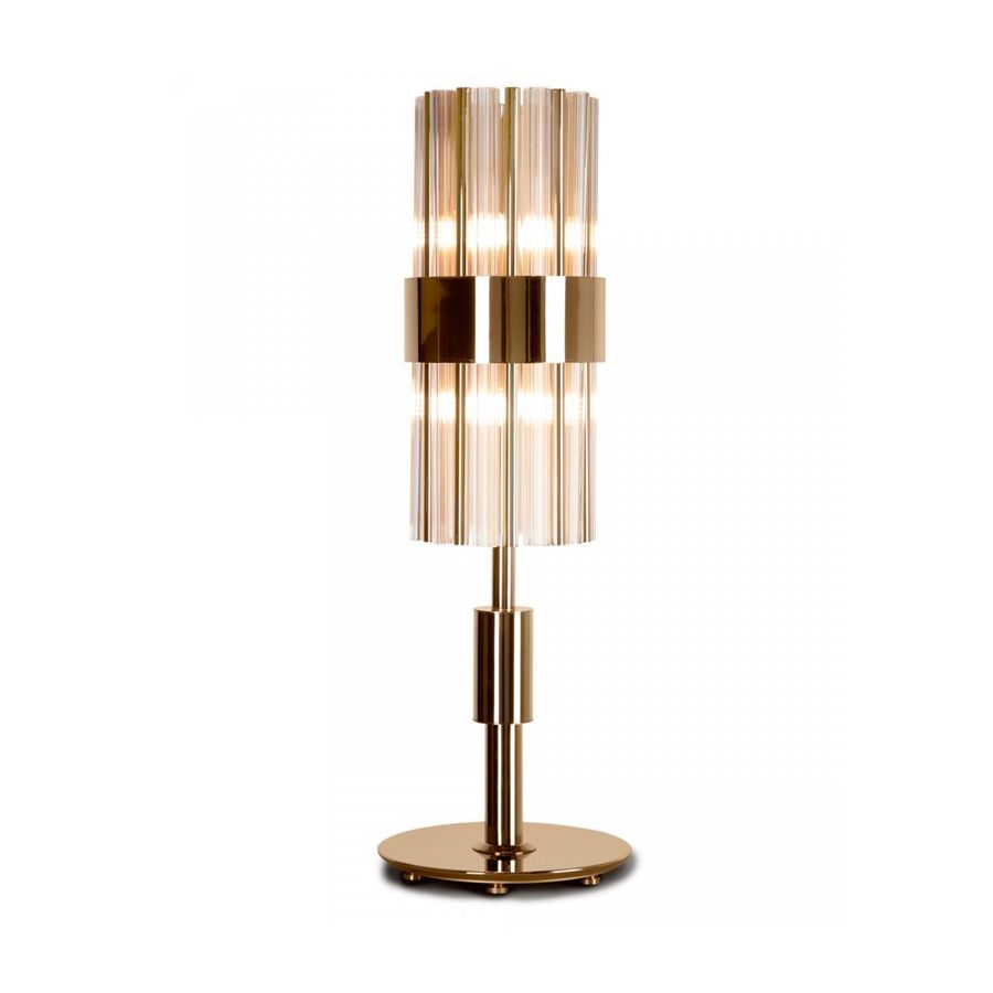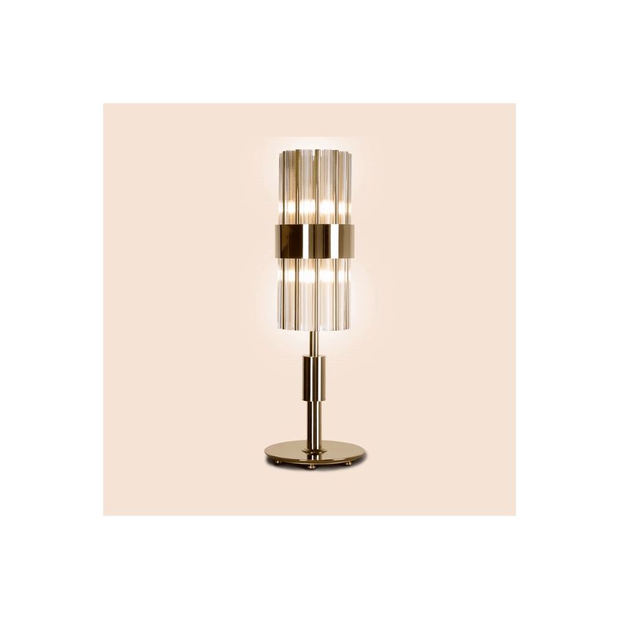 Halma bordslampa designades för att hylla fusionen av ädla material samt enkel och delikat geometri. Tillverkad med en stomme av mässing innesluten av klart kristallglas, förenar denna design oväntat de två materialen utan ansträngning och på ett originellt sätt, vilket ger den ett enhetligt och lyxigt utseende. En ytterst mångsidig belysningsarmatur med exklusiv skönhet och elegans.