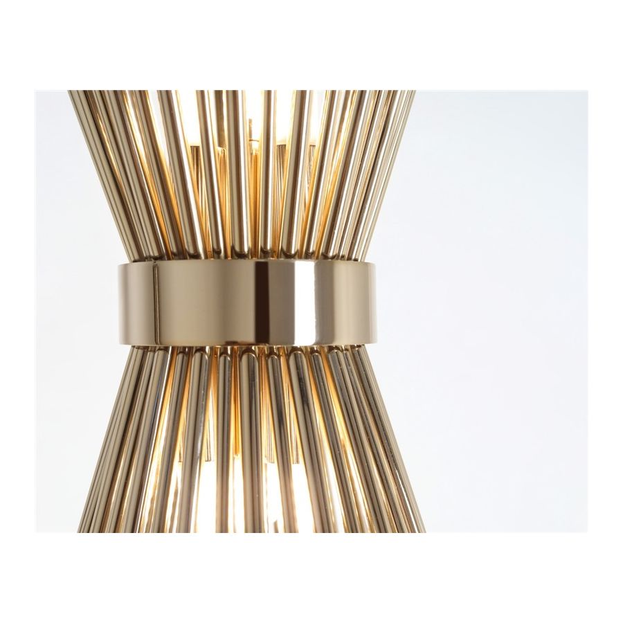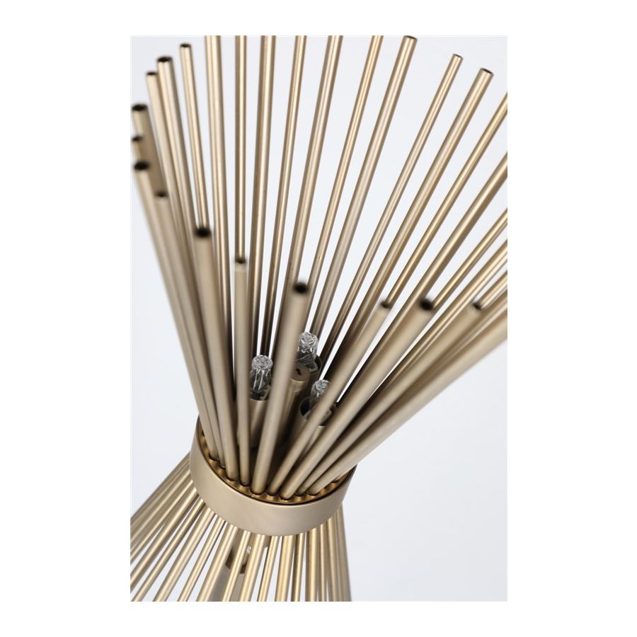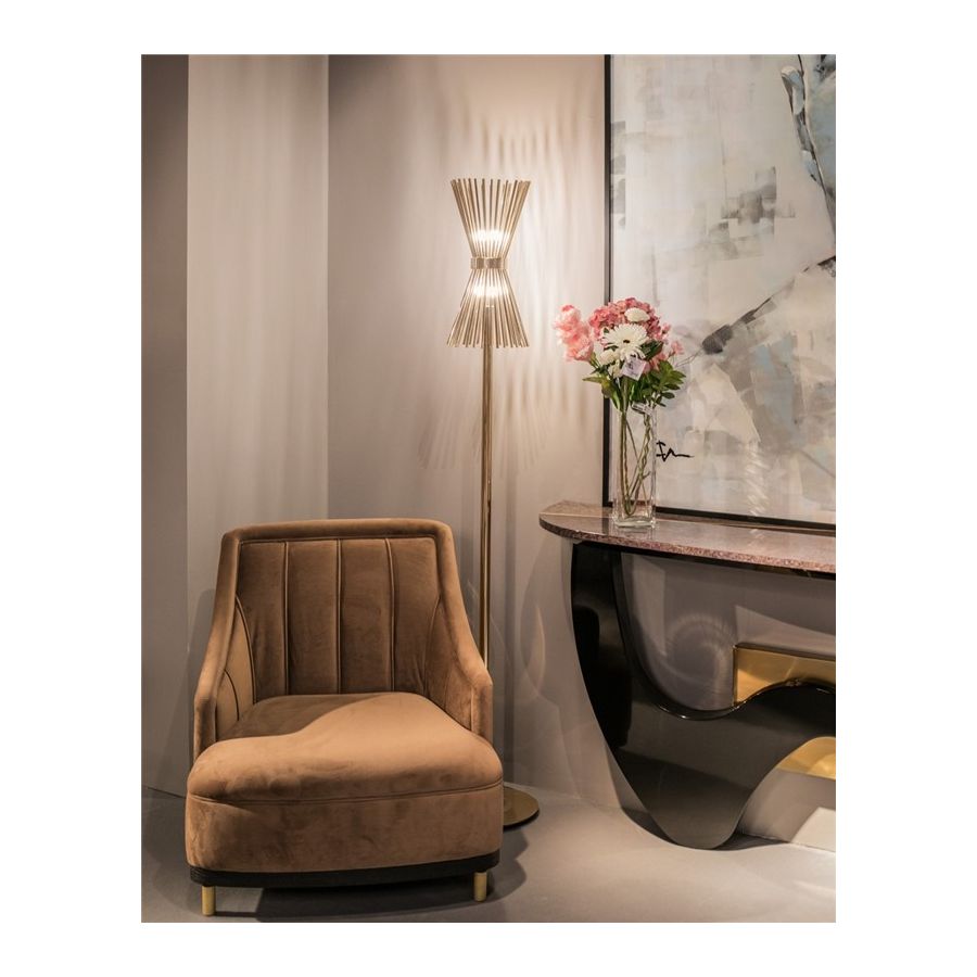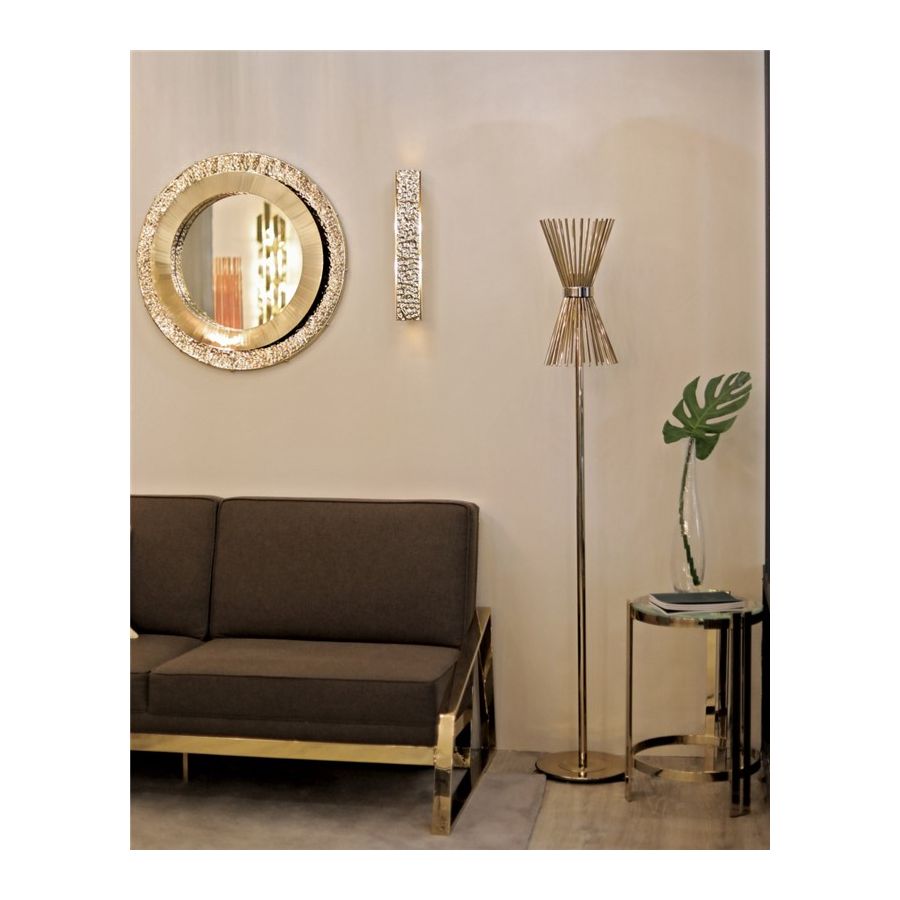 Halo-golvlampan, tillverkad uteslutande i förgyllt mässing, är ett uttryck för modern inspiration som designats för dem som vill ha en enkel och elegant belysningsarmatur utan att ge avkall på charm och finess.