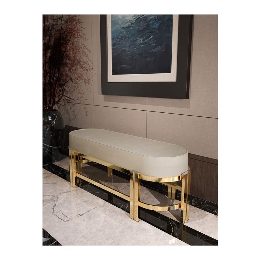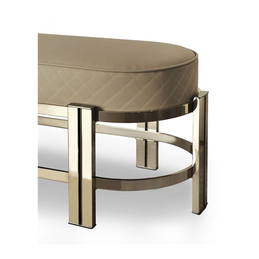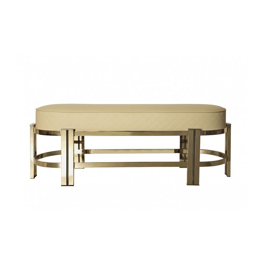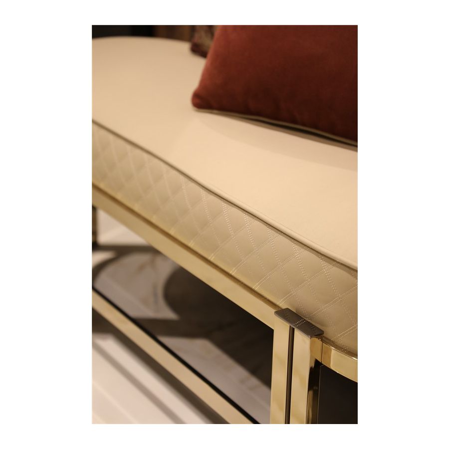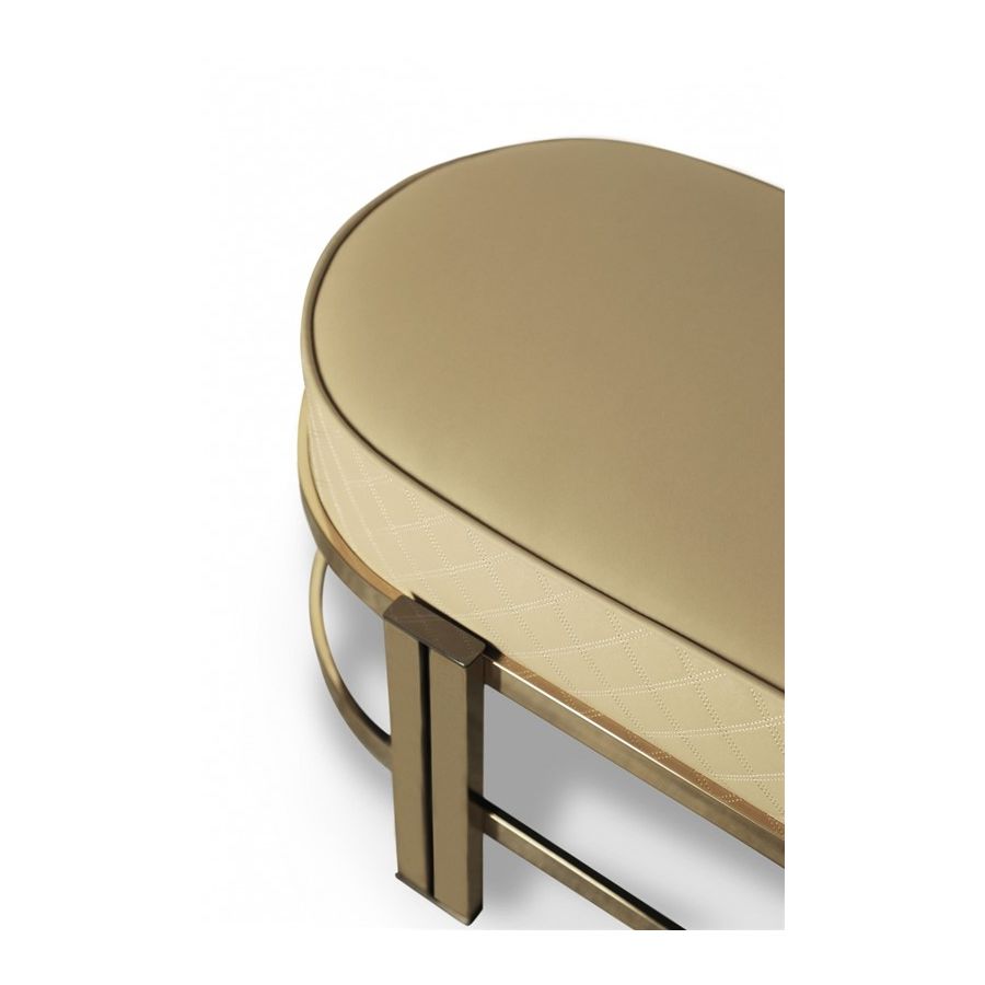Denna lyxiga bänk kännetecknas av en förfinad kombination av material, såsom mässingen som ramar in det fängslande klädseltyget. Maries storslagna design syftar till att vara mer än vad som möter ögat och har ett sofistikerat, exklusivt utseende.