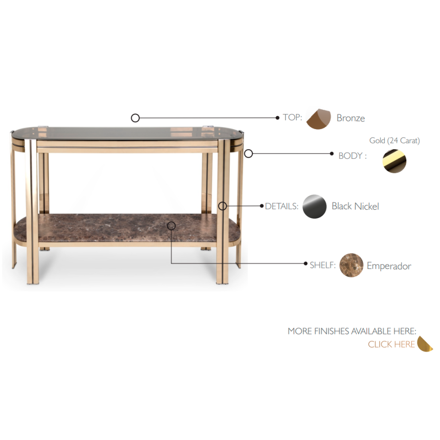 Marie Console fick sitt namn efter Marie Antoinette, Frankrikes sista drottning före franska revolutionen. Denna eleganta möbeldesign bär samma namn och den prakt den erbjuder. Marie Antoinette var välkänd för sin extravaganta och ytterst lyxiga livsstil, extroverta personlighet, kärlek till mode, fester och nöjen.