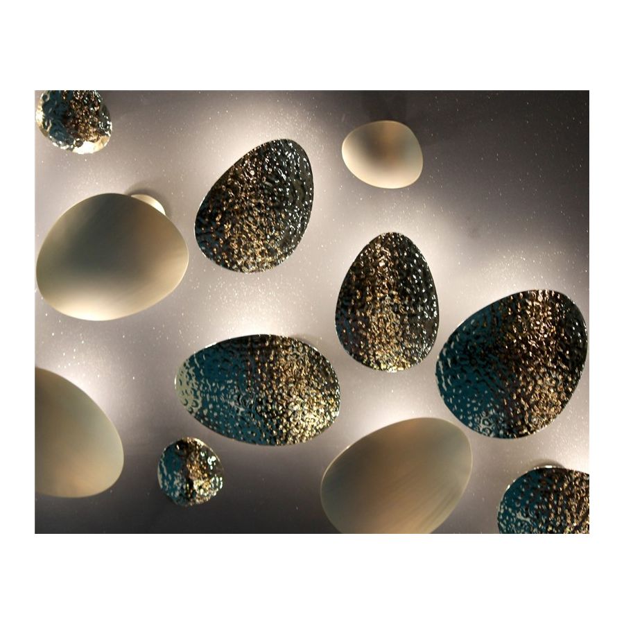 Mästerskaps kraftfulla men ändå mjuka linjer skapar en organisk rörelse av ljus och skuggor som antyder elegans och glamour. Denna storslagna vägglampa, handgjord i guldbelagd mässing, kommer att stå ut i de mest lyxiga och exklusiva interiörerna.