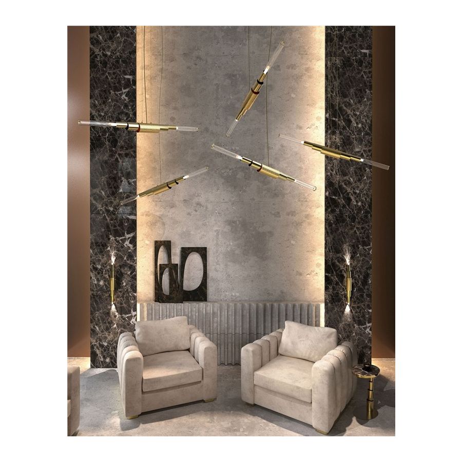 Enastående och fördelaktiga egenskaper framhäver en fusion av samtida djärvhet och klassisk elegans, vilket avslöjar en hemlighet om ett bestående arv inom lyxbelysningsdesign. Detta mästerverk speglar en förfinad personlighet och kan vara den perfekta passformen för kurerade interiörer som kombinerar en mångfald av stilar. Med en kosmopolitisk sinnestämning rekommenderas den för storslagna inomhusmiljöer, såsom hotellobbyn eller rymliga vardagsrum, och kompletterar interiörens förfining med den banbrytande belysningsdesignen.