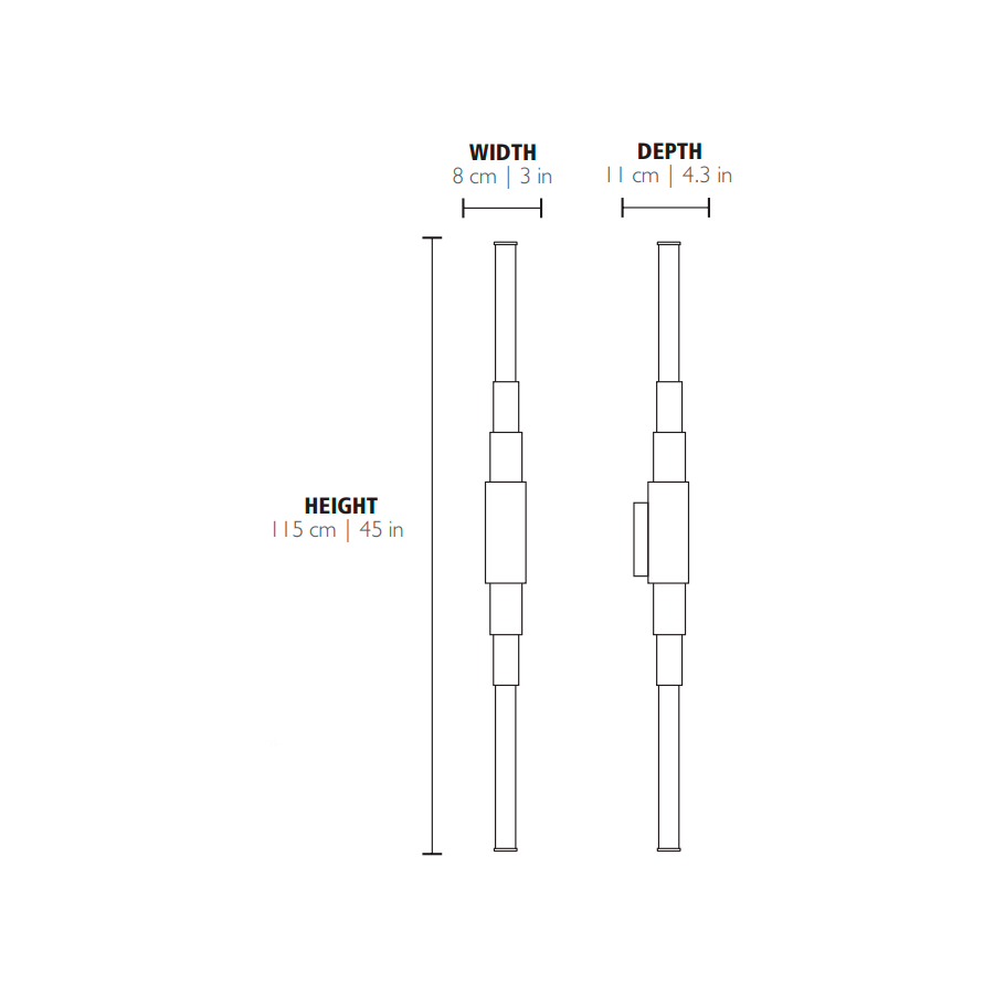 | Mått (HxBxD): | cm: 115x8x11 / inch: 45.28"x3.15"x4.33" |