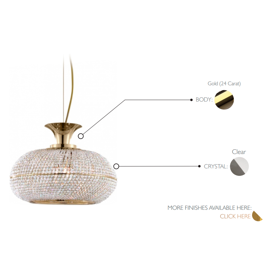 Denna pendellampa framhäver den befintliga balansen mellan klassisk stil och det unika uttryck som kristalldetaljerna ger, och är den perfekta pjäsen att inkludera i de mest unika och lyxiga interiörerna.