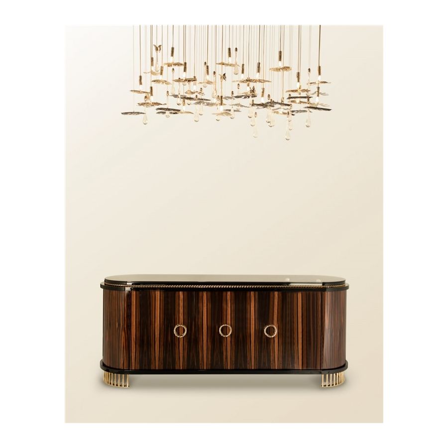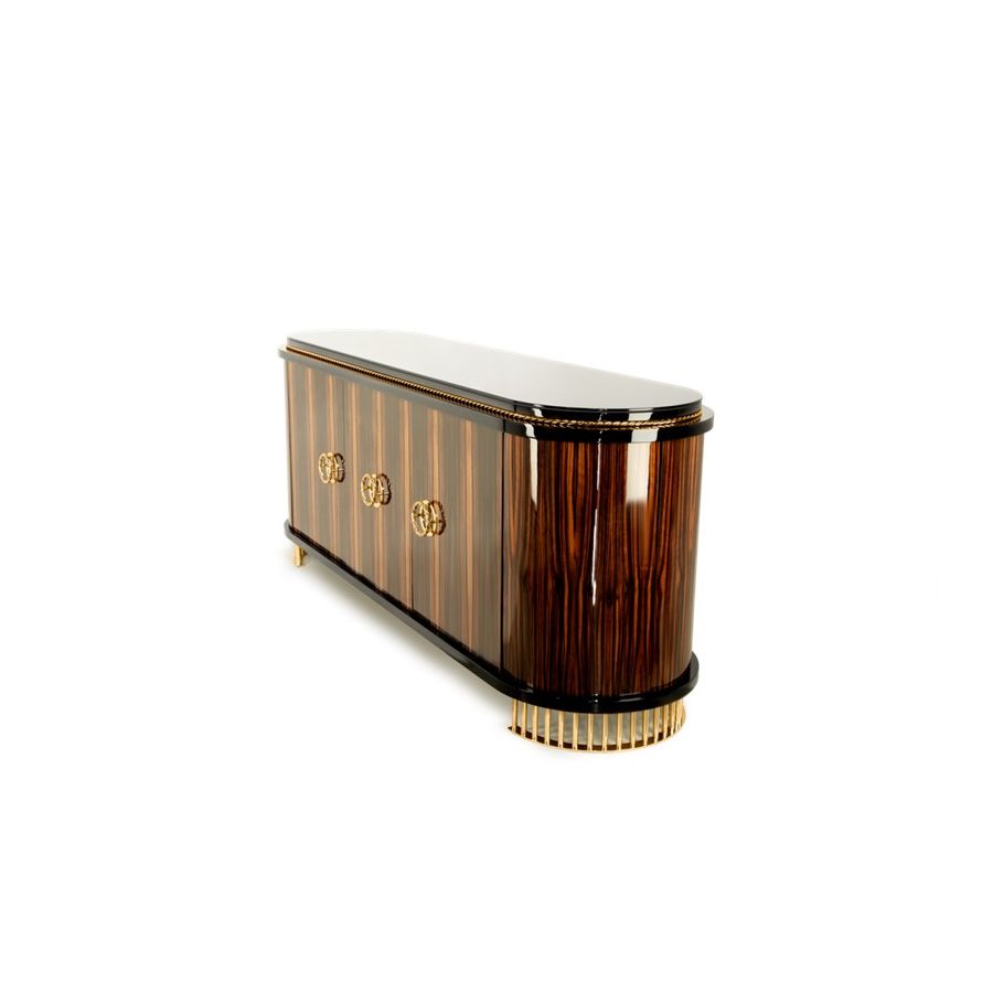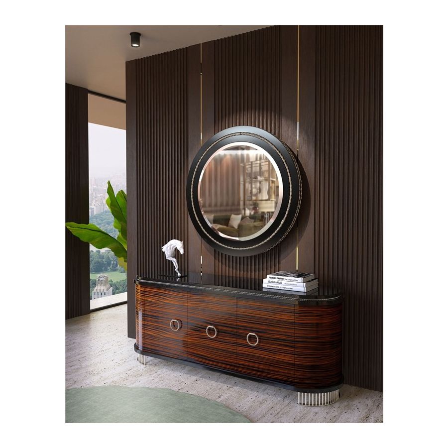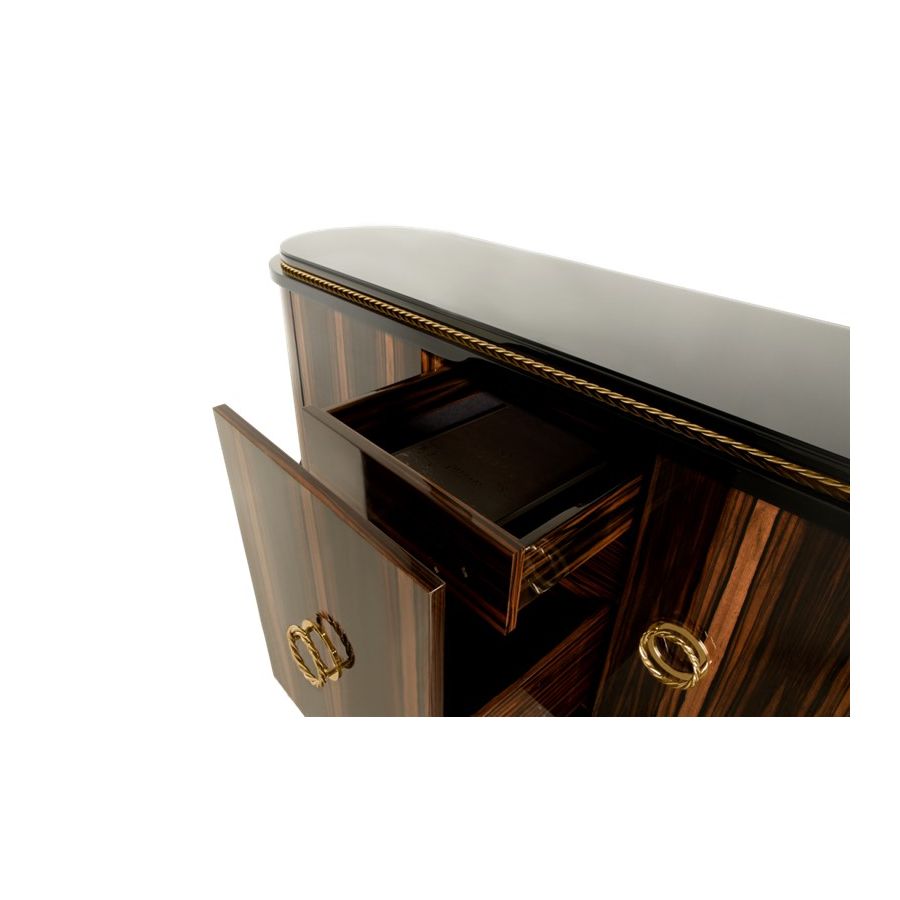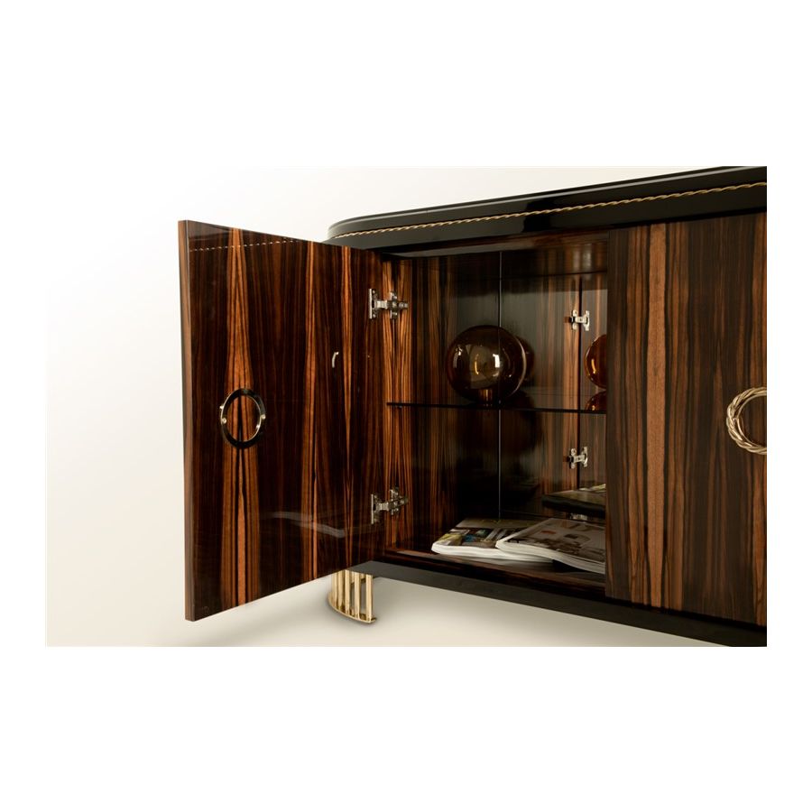 Varje konstnärlig detalj är handgjord av våra professionella hantverkare med de finaste materialen. Dörrarna har ett tic-tac-system som förstärker modernismen i denna lyxiga skänk. Det balanserade och tidlösa möbelinslaget skulle vara det perfekta lyxiga elementet i vilket bostadsinredningsprojekt som helst. Modern klassisk enkelhet fungerar väl tillsammans med samtida atmosfärer och kommer utan tvekan att sticka ut i de mest lyxiga och exklusiva inredningarna. Den utsökta livsstilsdesignen passar väl i huvudsakliga vardagsrum- eller matsalsområden och kan kompletteras med lyxiga belysningsarmaturer.