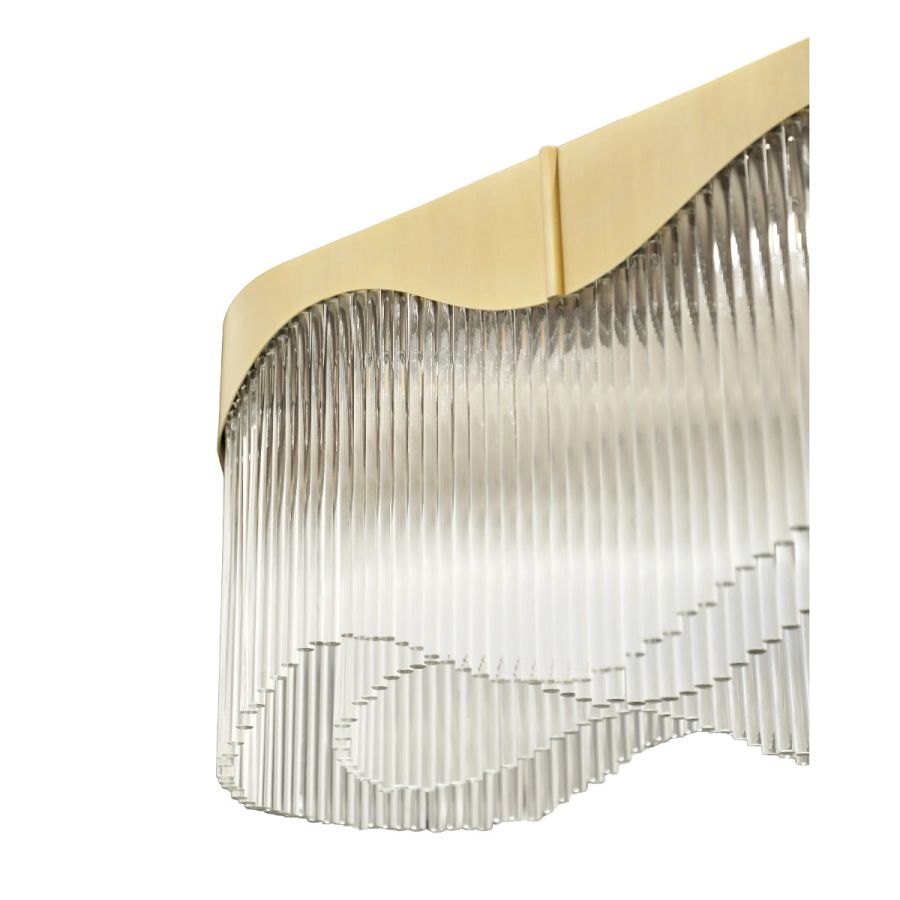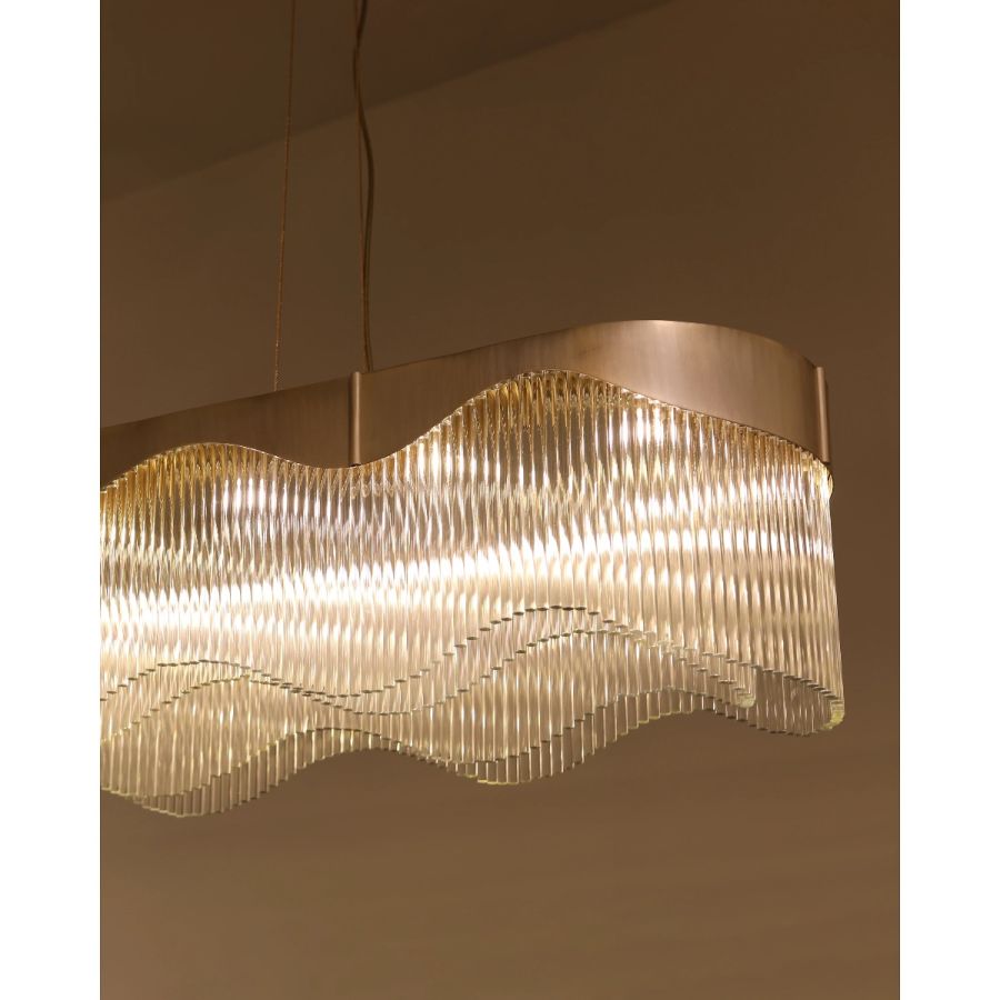 Detta belysningsmästerverk omdefinierar elegans genom sin förtrollande design och sina anpassningsbara funktioner. Inspirerad av visionen från en kräsen kund fångar denna abstrakta ljuskrona essensen av flöde med sina invecklade kurvor och vågor som tycks dansa i luften.