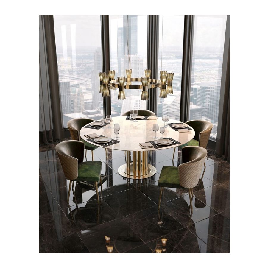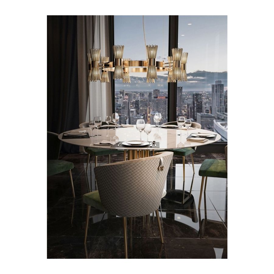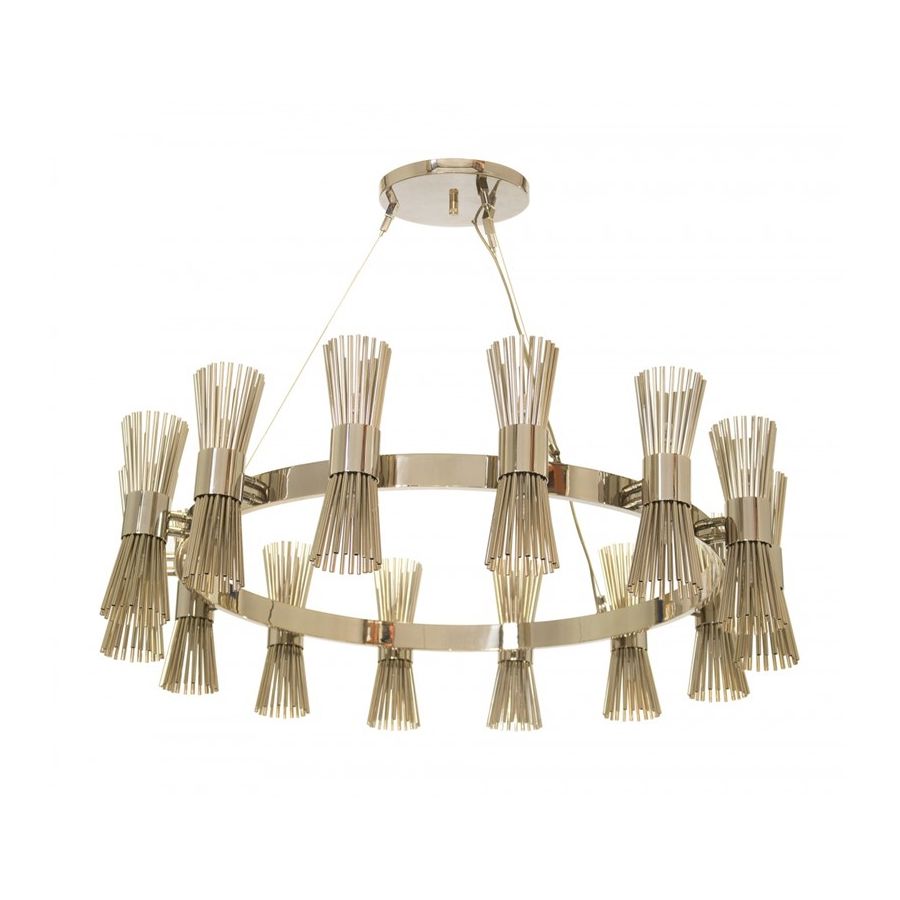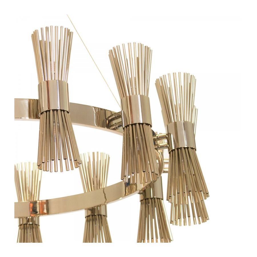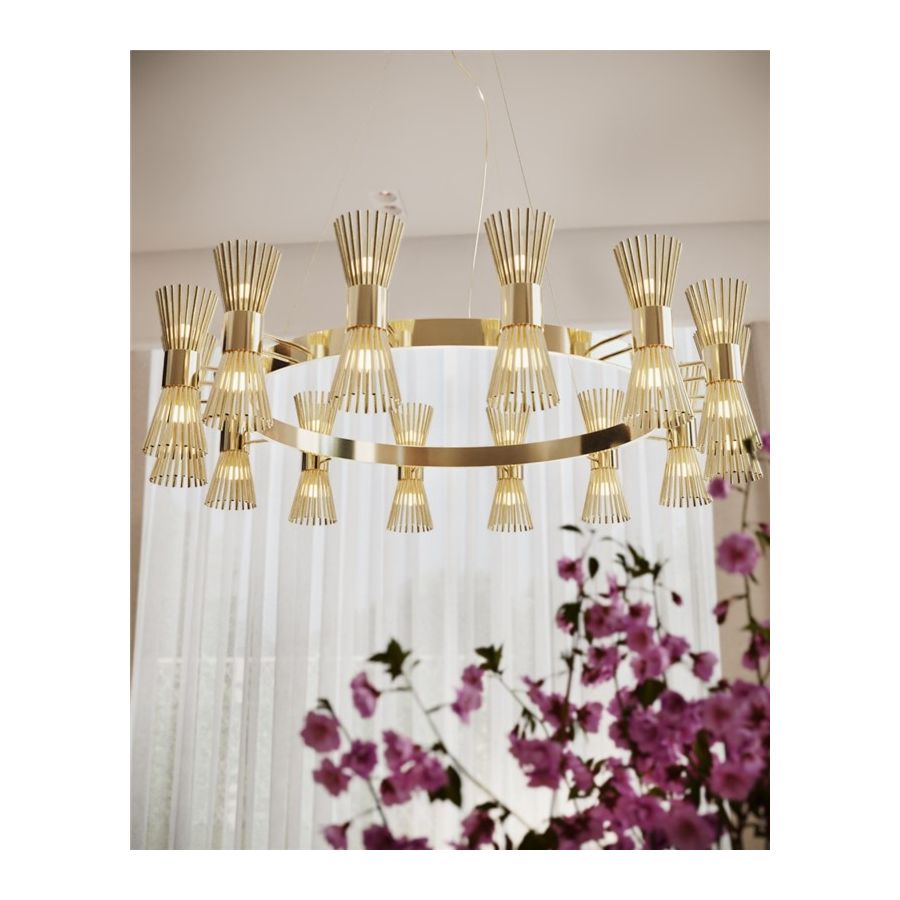 Halo Suspension, tillverkad enbart i guldpläterad mässing, är ett uttryck för modern inspiration som har designats för dem som vill ha en enkel och elegant belysningsarmatur utan att ge avkall på charm och förfining.