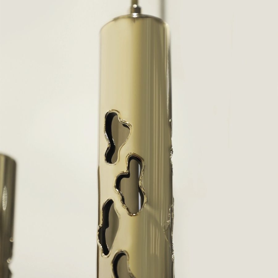 Masai-pendeln är inspirerad av den naturliga skönheten hos Masai-giraffen, med en elegant design som framhäver giraffens karakteristiska mönster och graciösa siluett. Pendelns intrikata mässingsstruktur speglar giraffens ikoniska fläckar och skapar ett uttryck som är både organiskt och sofistikerat.