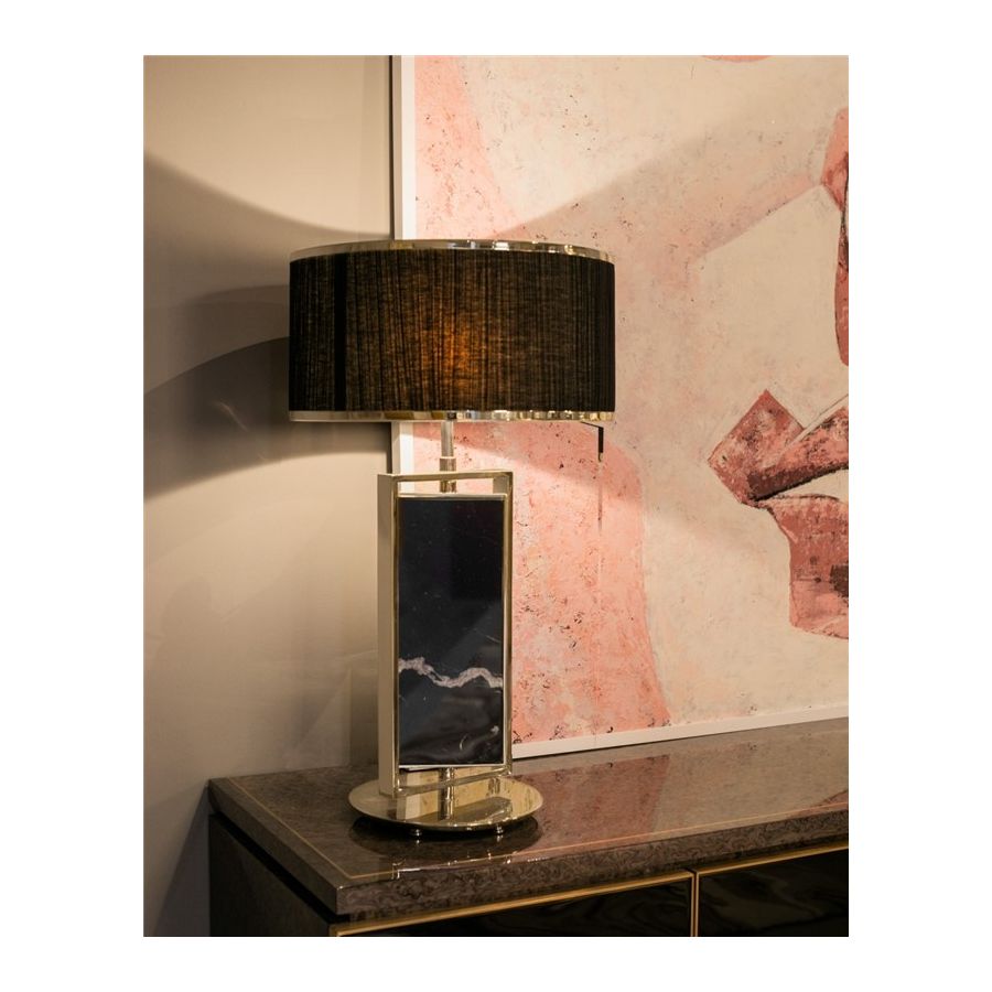 Denna tidlösa, förföriska design är den perfekta dekorativa lampan, kapabel att passa in i de mest krävande inredningarna och högklassiga projekt. Användningen av flera material som mässing och marmor gör att denna unika belysningsarmatur kan ta dig till en exotisk miljö när ljuset sprider sig i rummet.