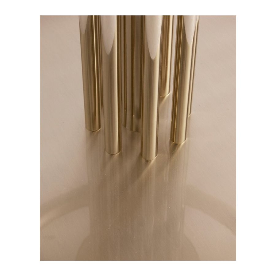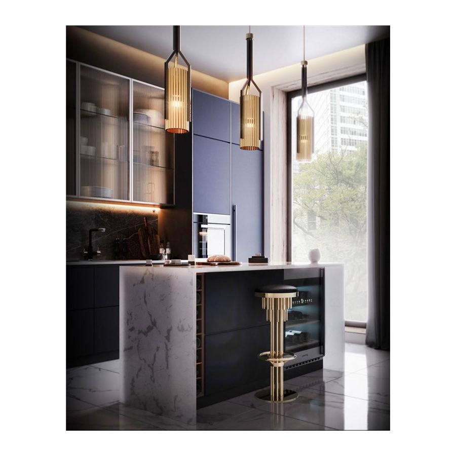 Med en imponerande och spektakulär konstruktion av dussintals individuella guldpläterade mässingsrör är Projection bar stool ett designuttalande, omöjligt att förbise och det perfekta valet för högklassiga miljöer. Denna design passar både för bostads- och kommersiella projekt. Matcha den med flera barstolar för att inreda en modern hemmabar eller pryda en extravagant middag. Dess elegans och mångsidighet kommer att tillföra en touch av lyx till rummen eftersom dess design är framtänkt för att kombinera värdefulla tekniker och ädla material samtidigt som den säkerställer komfort.