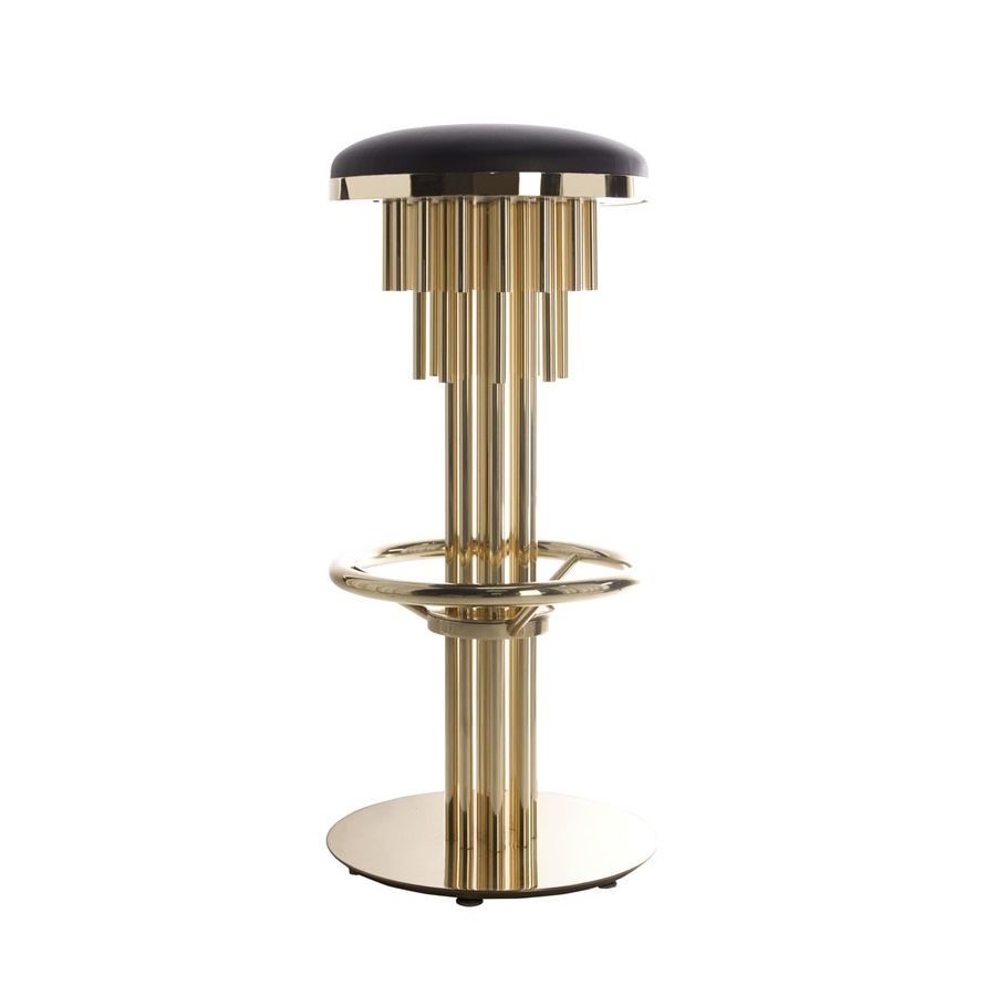 Denna barstol utforskar begreppet projektion då de guldpläterade mässingsrören fyller basen och toppen av delarna, som visas som om de projicerade från sida till sida. Rörens oregelbundna höjd leder till en ovanlig form som kommer att sticka ut i de mest utsökta interiörerna.