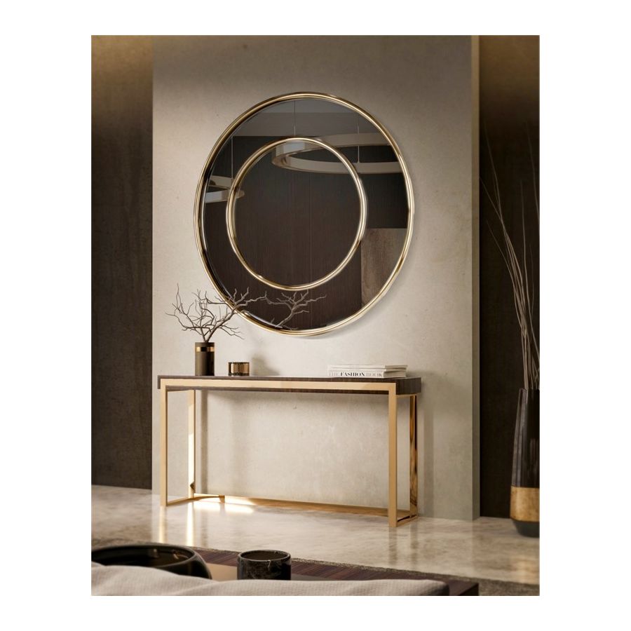 Detta är en ren minimalistisk twist som återspeglas i dubbelringar i denna design. Hitta en stilfull lösning för det utsökta utrymmet med Roma Mirror, som ger varje inredningsprojekt en modern och sofistikerad touch.