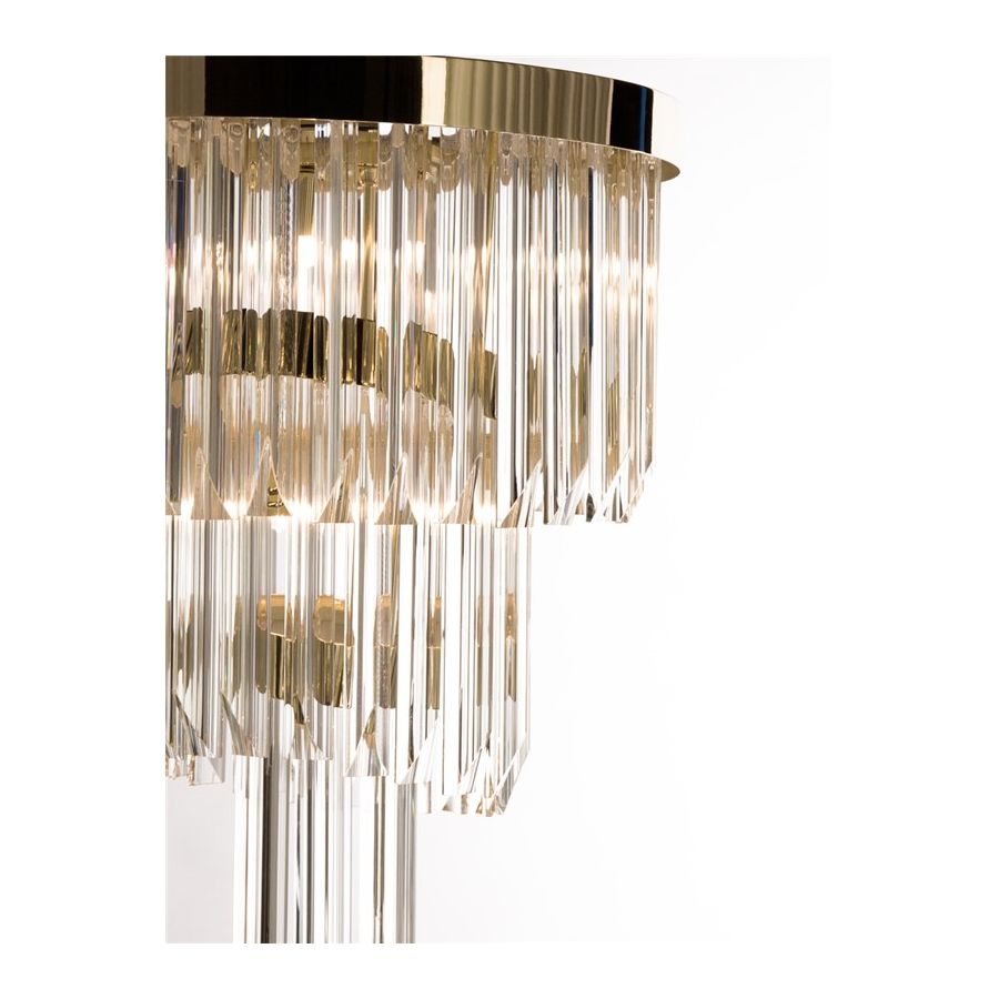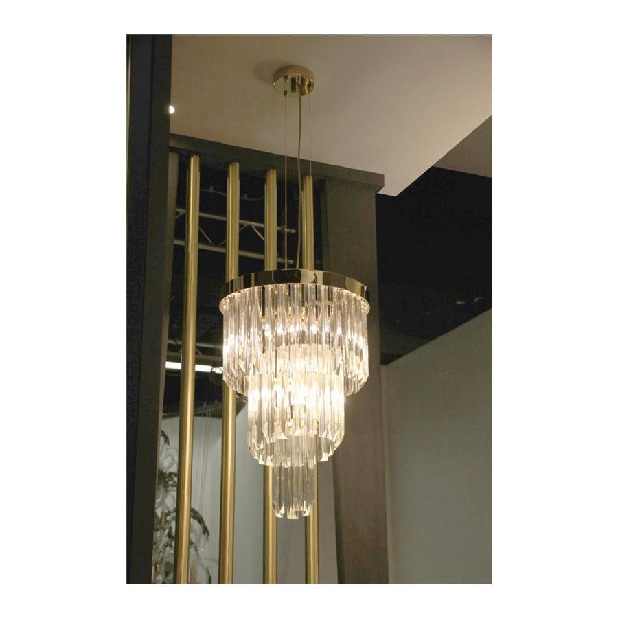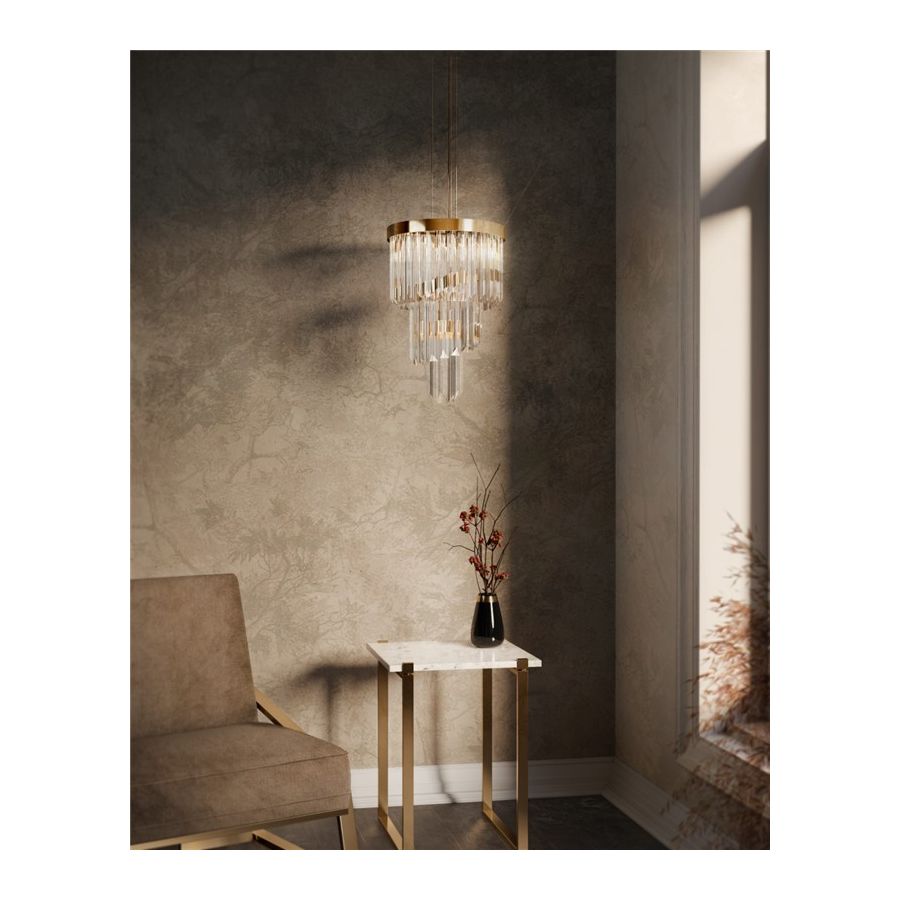Det kungliga hänget inkorporerar lyxen och överdådigheten från den kungliga eran, vilket demonstreras i omsorgen om varje detalj och användningen av traditionella hantverkstekniker. Sammansatt av mässing och glas är de olika nivåerna i detta handgjorda hänge ett anmärkningsvärt uttryck för hur en modern touch kan förhöja en traditionell design.