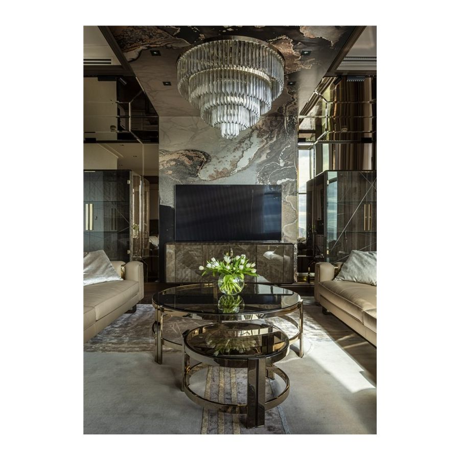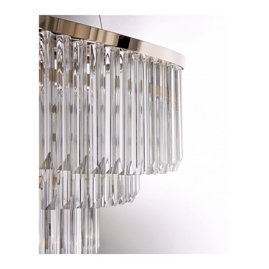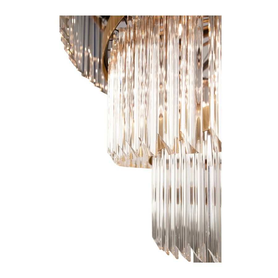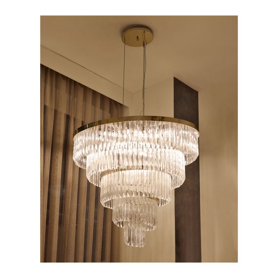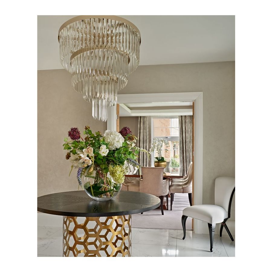 Den Kungliga kollektionen inkorporerar lyxen och överdådet från den Kungliga epoken, vilket visas i omsorgen om varje detalj och användningen av traditionella hantverkstekniker. Bestående av mässing och glas utgör de olika nivåerna i denna handgjorda ljuskrona en anmärkningsvärd uppvisning av hur en modern touch kan förhöja en traditionell design. Dessa utmärkande egenskaper, gör Kungliga pendeln, en perfekt lösning för stora ytor, i stånd att fånga all uppmärksamhet i rummet.