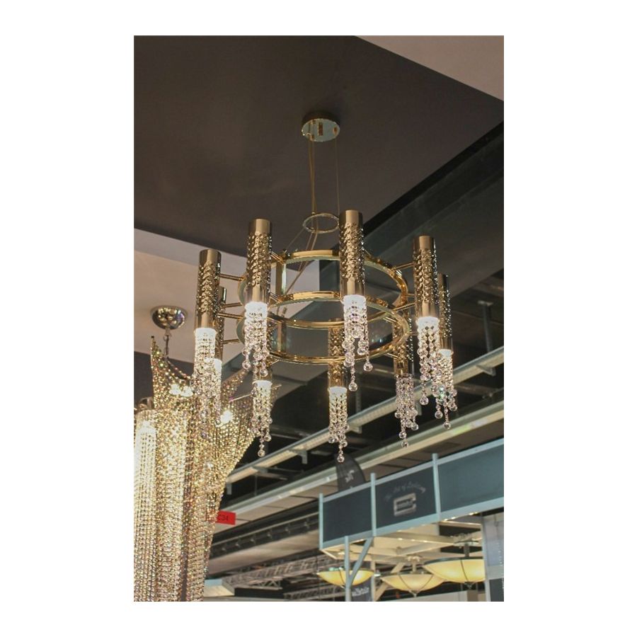 Varje 24k-guldbelagt mässingsrör bankas för hand av erfarna hantverkare och dekoreras med klara kristaller som noggrant monteras en och en av belysningstillverkare.