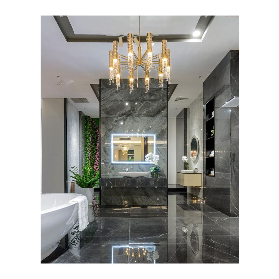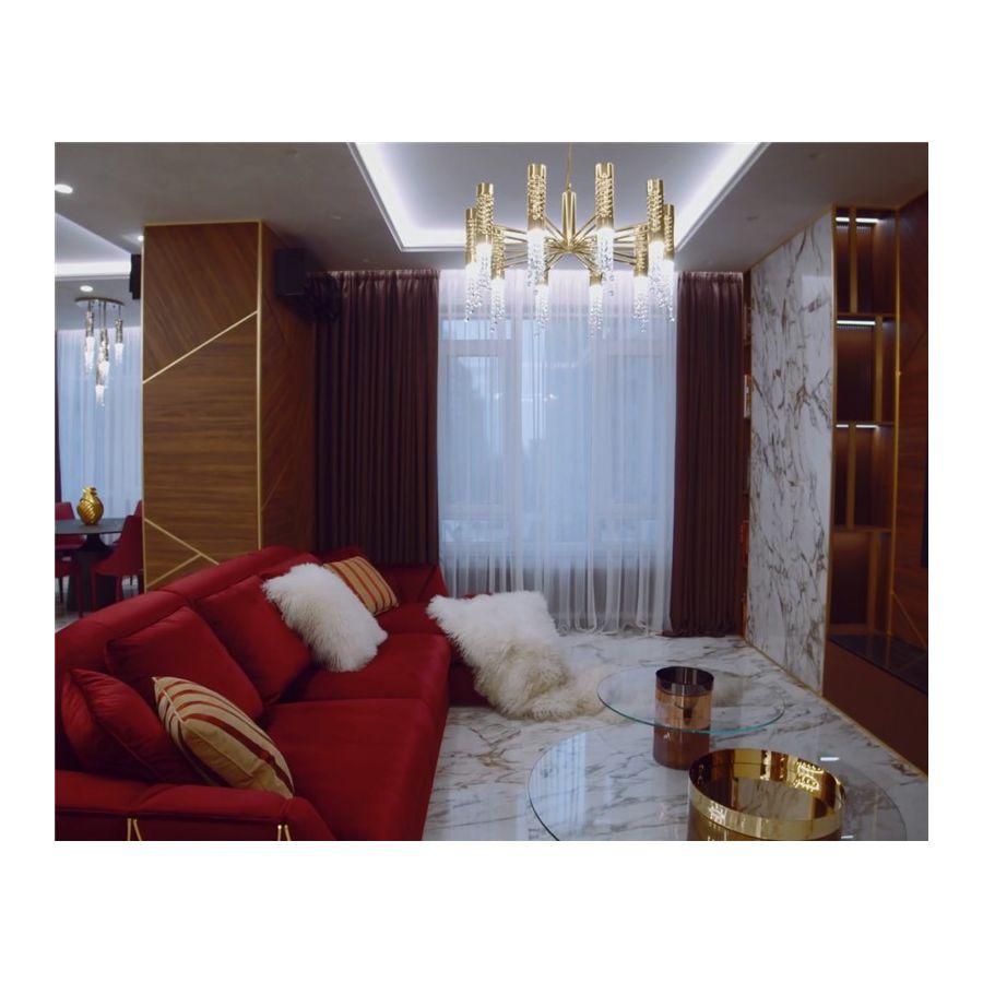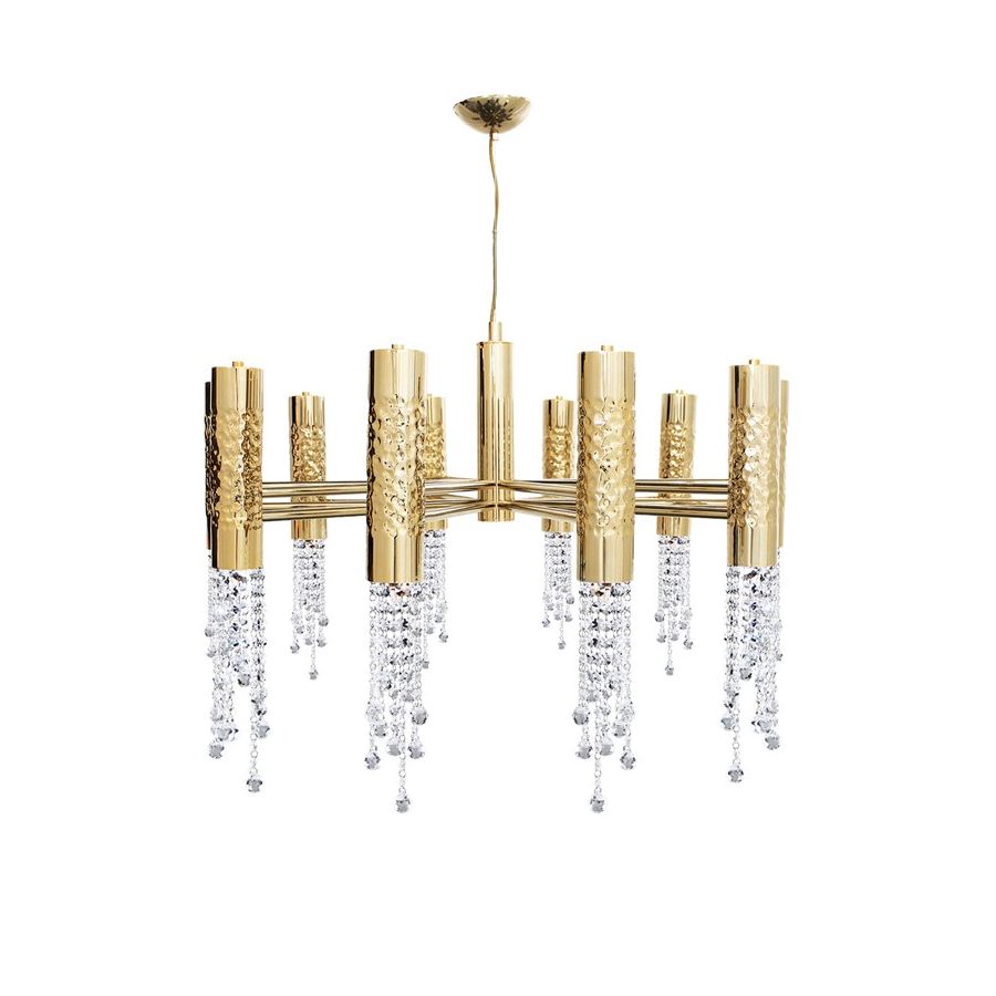 Varje 24k guldbelagt mässingsrör hamras av erfarna hantverkare och dekoreras med klara kristaller som noggrant monteras en och en av belysningstillverkare.