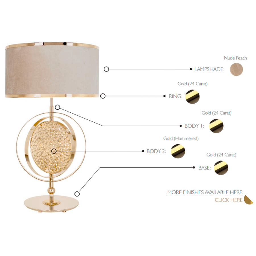 I antik mytologi var Saturnus den gudomlige fadern till Jupiter. I en viss romantisk bemärkelse, metaforiskt, betraktades han som tidens och ödets gud. Inspirerad av kosmiska vibbar och astronomisk mystik designades Saturnus-bordslampan för att vara ambitiös men ändå en naturlig strålkastare i de mest krävande inredningsprojekten. Denna unika armatur skulle verkligen kunna anses ovärderlig av konnässörer som uppskattar exklusiva och lyxiga föremål.