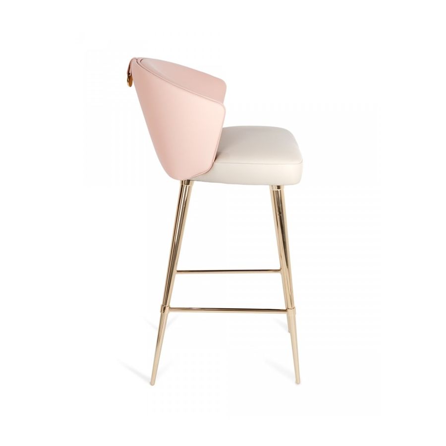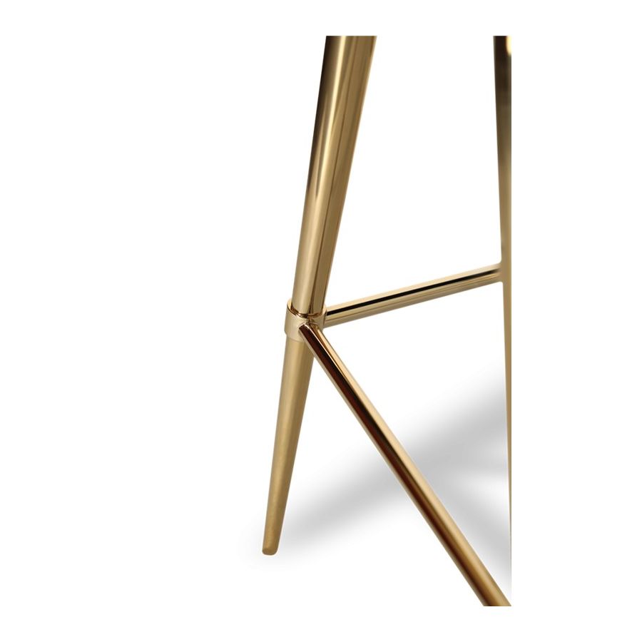 Den lyxiga, tidlösa anblicken av denna handgjorda barstol, skapad av en förfinad kombination av material såsom mässing och läder, ramar in den förtrollande klädseln med en aning av finessestetik. Denna stolmodell kan fullt ut anpassas med Castros sortiment av tygval. Vilken annan tygdesign som helst kan läggas till, vilket gör den unik för varje exklusivt inredningsprojekt.