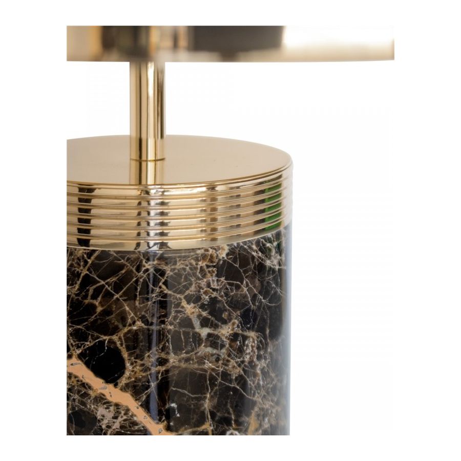 Ett robust material, såsom marmor, presenteras i ett block som bryts upp av guldbelagda mässingsringar som tillför elegans och mjukar upp denna skräddarsydda kollektion. Den eleganta kombinationen av dessa två material resulterar i fulländade detaljer som elegant passar in och berikar de mest utsökta dekorationerna.