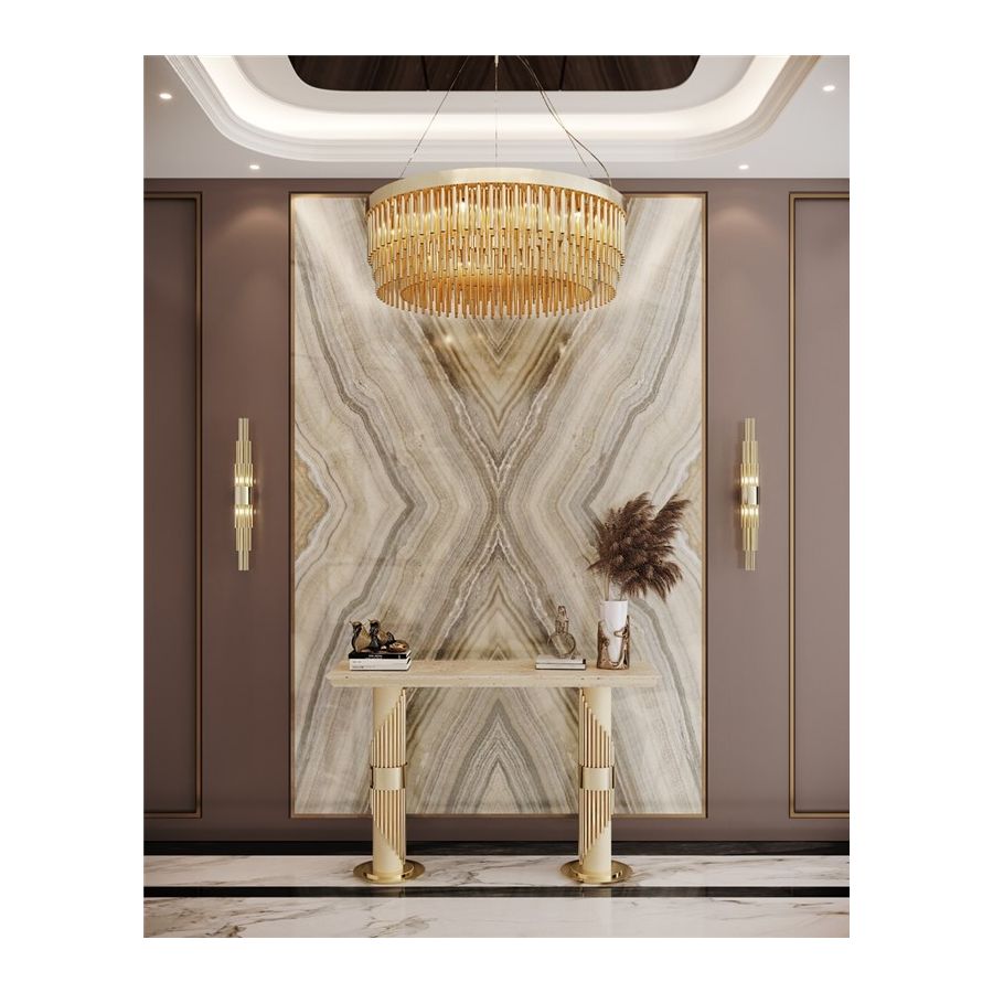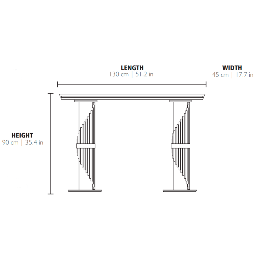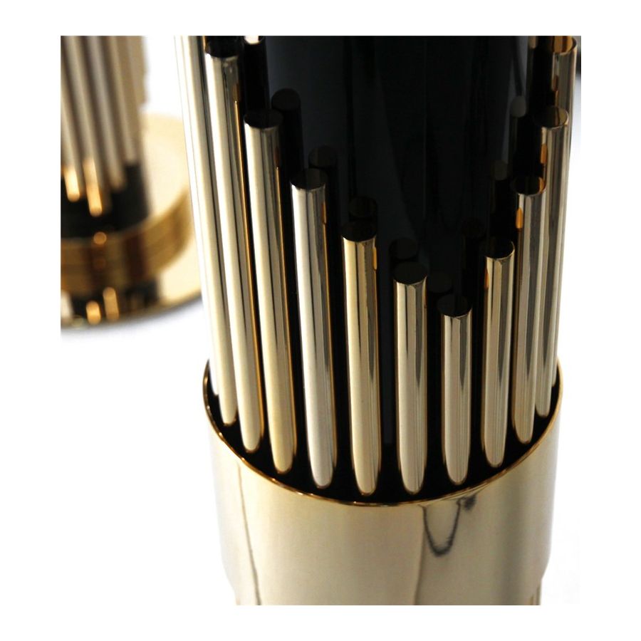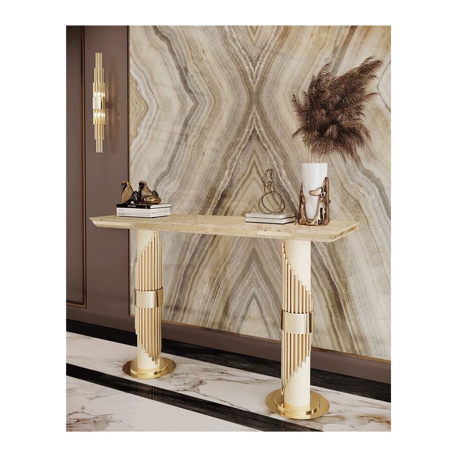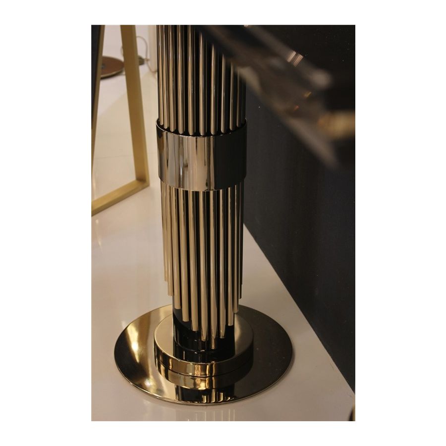 Denna eleganta konsol har långa guldpläterade mässingsrör som ger alla designer ett helt exklusivt och lyxigt utseende, och placerar dem på en annan nivå genom sin distinkta framtoning. Denna kombination av rika material, såsom mässing och svart Marquina-marmor, och slanka linjer inspirerade av art déco-arkitektur gör Streamline-konsolen eftertraktad.