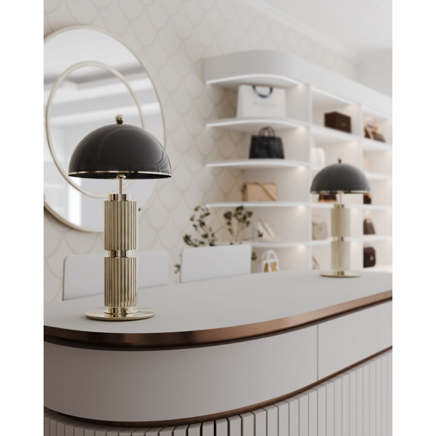 Upplys ditt rum med den tidlösa charmen hos Eléa-bordslampan, ett lysande mästerverk som överträffar det ordinära och förflyttar dig till ett rike av klassisk elegans. Försjunk i dess designs lockelse, som skickligt fångar den hellenska estetikens anda, kanaliserar antikens Greklands storslagenhet och hyllar dess rika kulturarv.