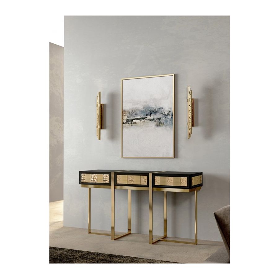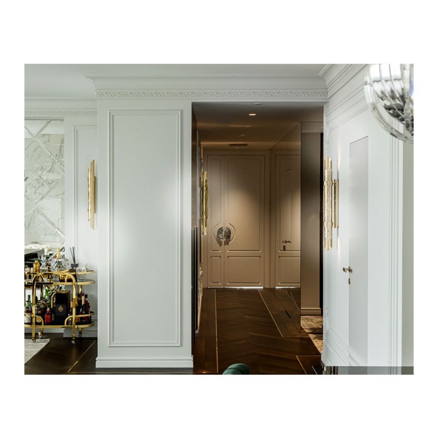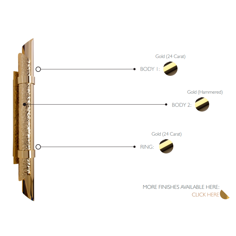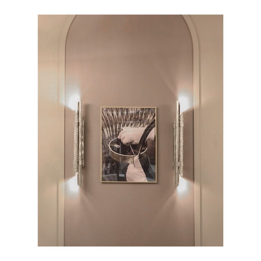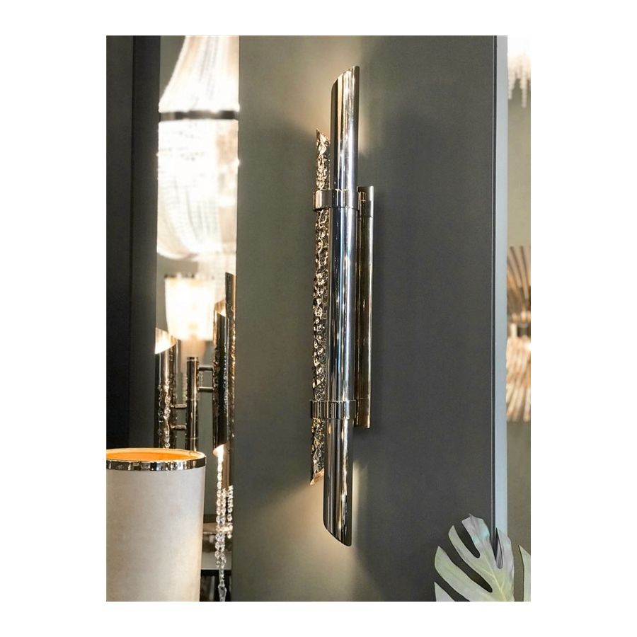 Triumph-vägglampan designades med stor stolthet för att passa i moderna lyxiga interiörer. Användningen av särskilda material såsom mässing gör den exklusiv. Dess design möjliggör skapandet av en vacker ljuseffekt. Denna handgjorda pjäs är ett utmärkt exempel på hur mindre är mer eftersom den endast består av två halva mässingsrör, det ena hamrat och det andra polerat.