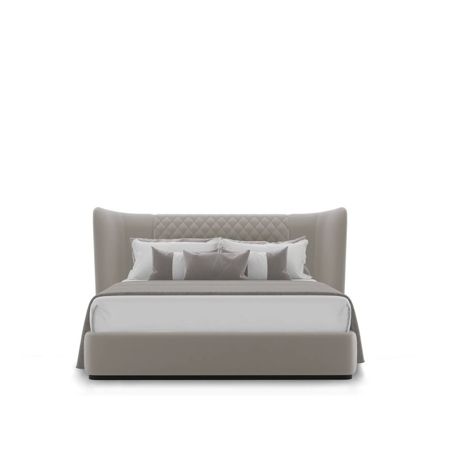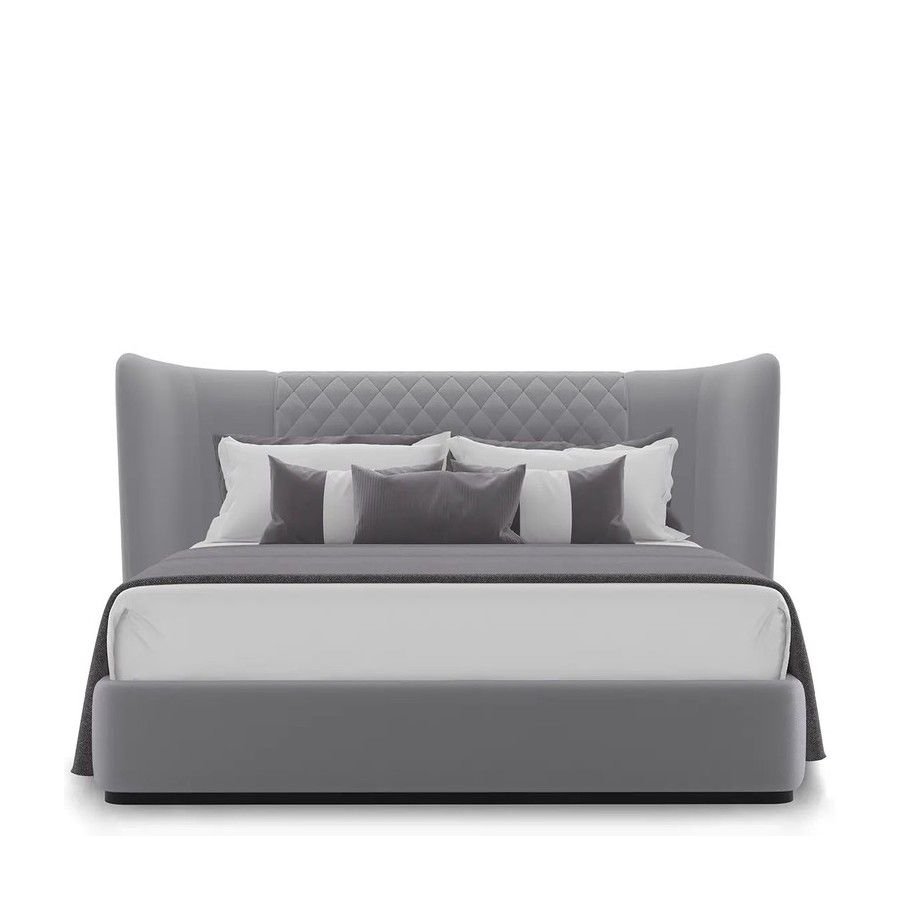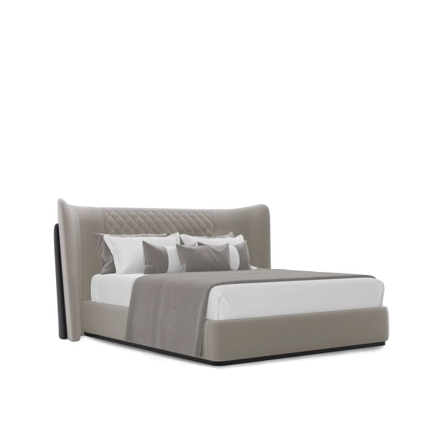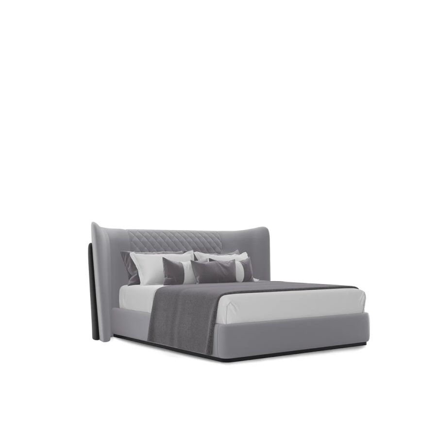 The Charla Bed instantly becomes the centerpiece of any bedroom decor, commanding attention with its impeccable craftsmanship and luxurious grey and black leather upholstery. Experience the allure of opulence and wake up in unrivaled luxury with this high-end bed.