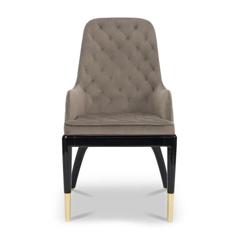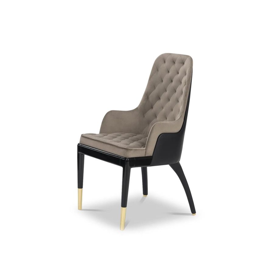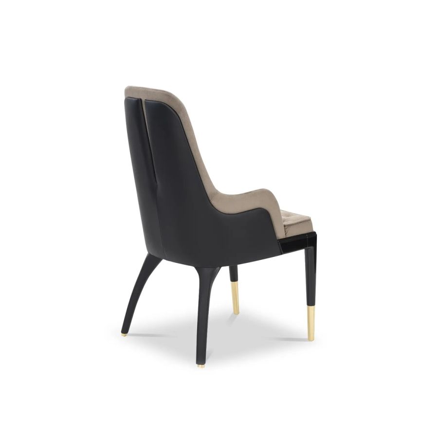 With an even more imperial shape, the Charla King Dining Chair portrays a powerful design with luxury finishes. Made of brass, leather, and velvet, this is the ideal chair for a lavish dining room. Blending luxury and comfort into one, it is a focal piece in the Charla collection.