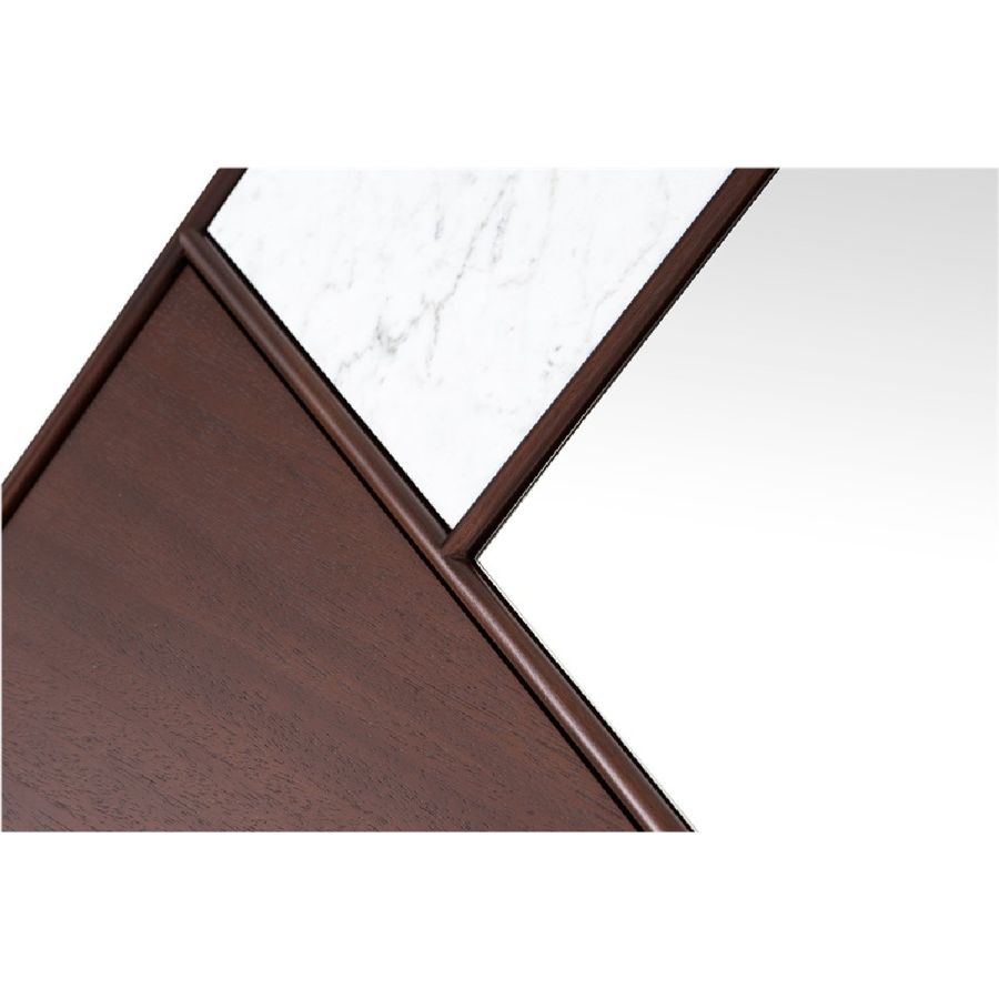 Named after the famous Op Art abstract artist, Edna Andrade, this stunning wall décor piece features geometric piece of mirror, wood veneer and white Carrara marble, slotted together to form a decorative rectangle.