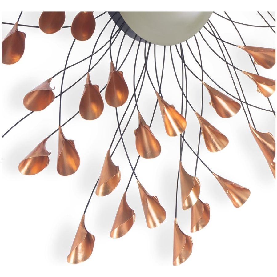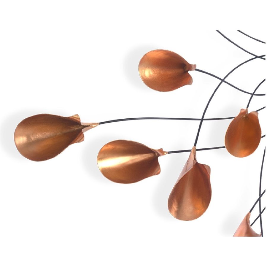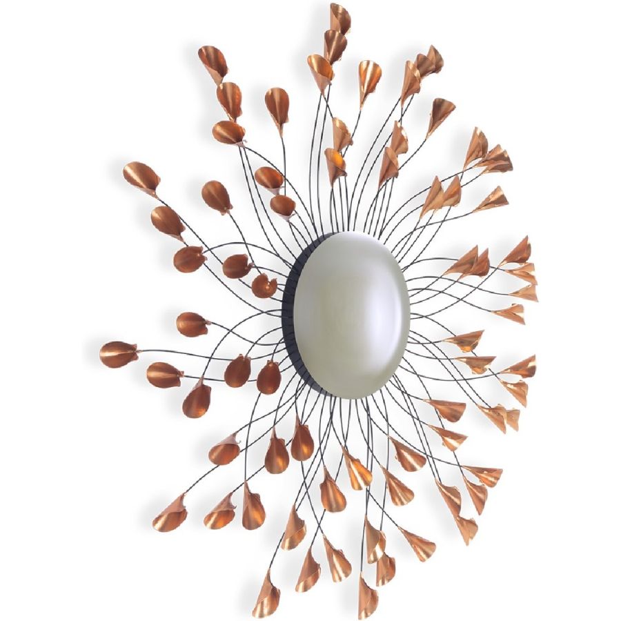Fronds of metal, tipped with copper finish lily flowers, delicately radiate from a central convex mirror pane, as though gently waving in a breeze in this extraordinarily beautiful piece. A new classic!