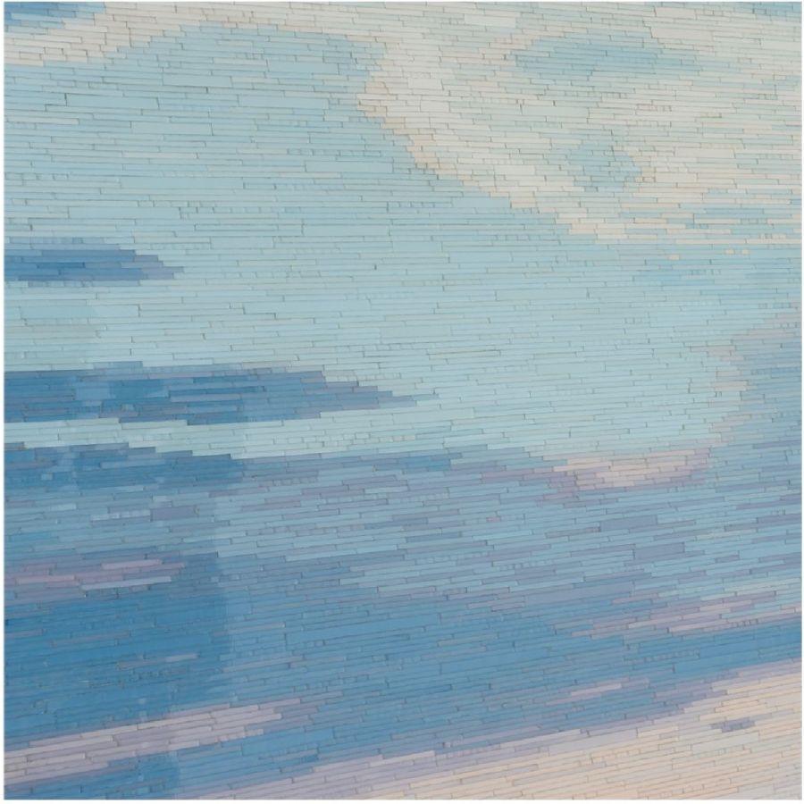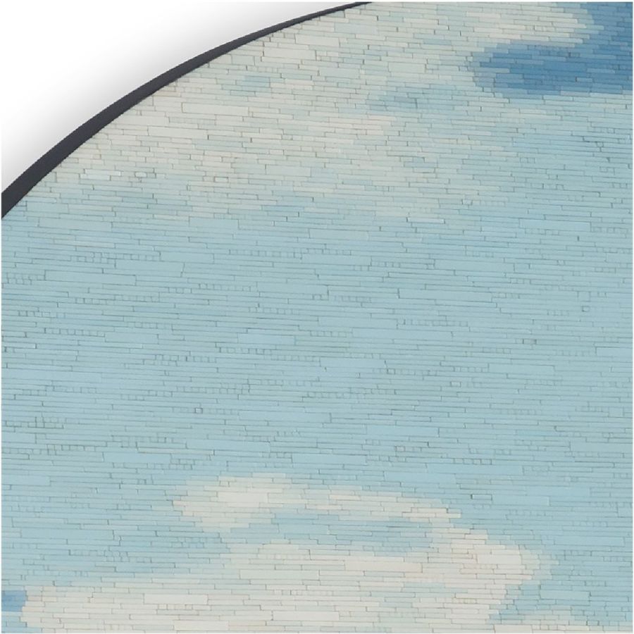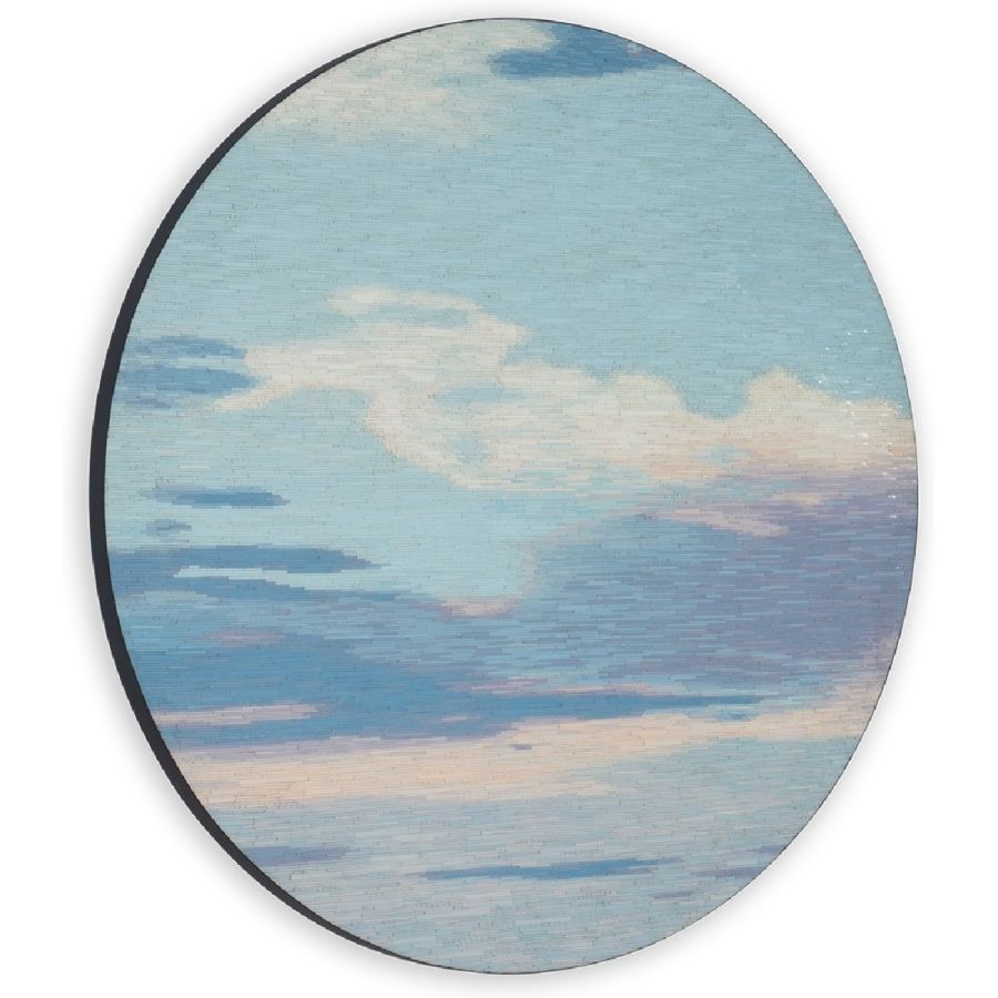 Ethereal, tranquil and transcendent, this spectacular circular mosaic is inspired by the sky on a late summer afternoon, with shades of turquoise and soft greys interspersed with gentle white nimbus clouds. Made with around 20,000 glass tiles, all hand cut and positioned by master craftsmen, this is a truly exceptional artwork.