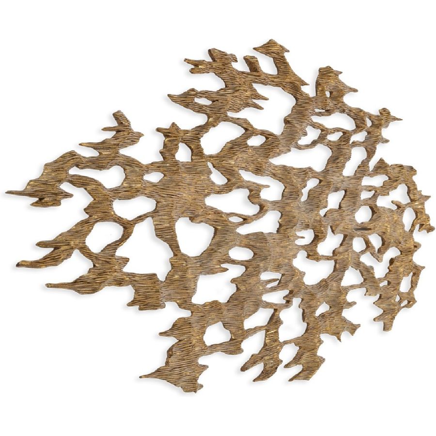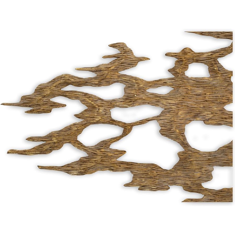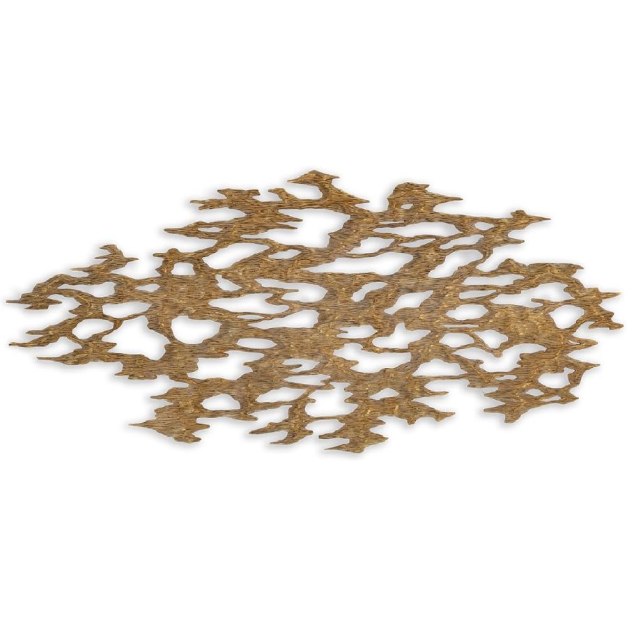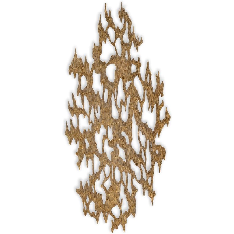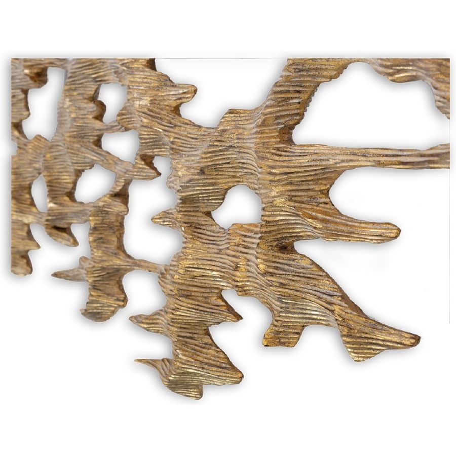 An outstanding piece of wall art, lovingly crafted by hand from solid hardwood, with volcanic rock effect and a rubbed gold-leaf finish.