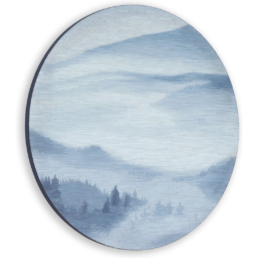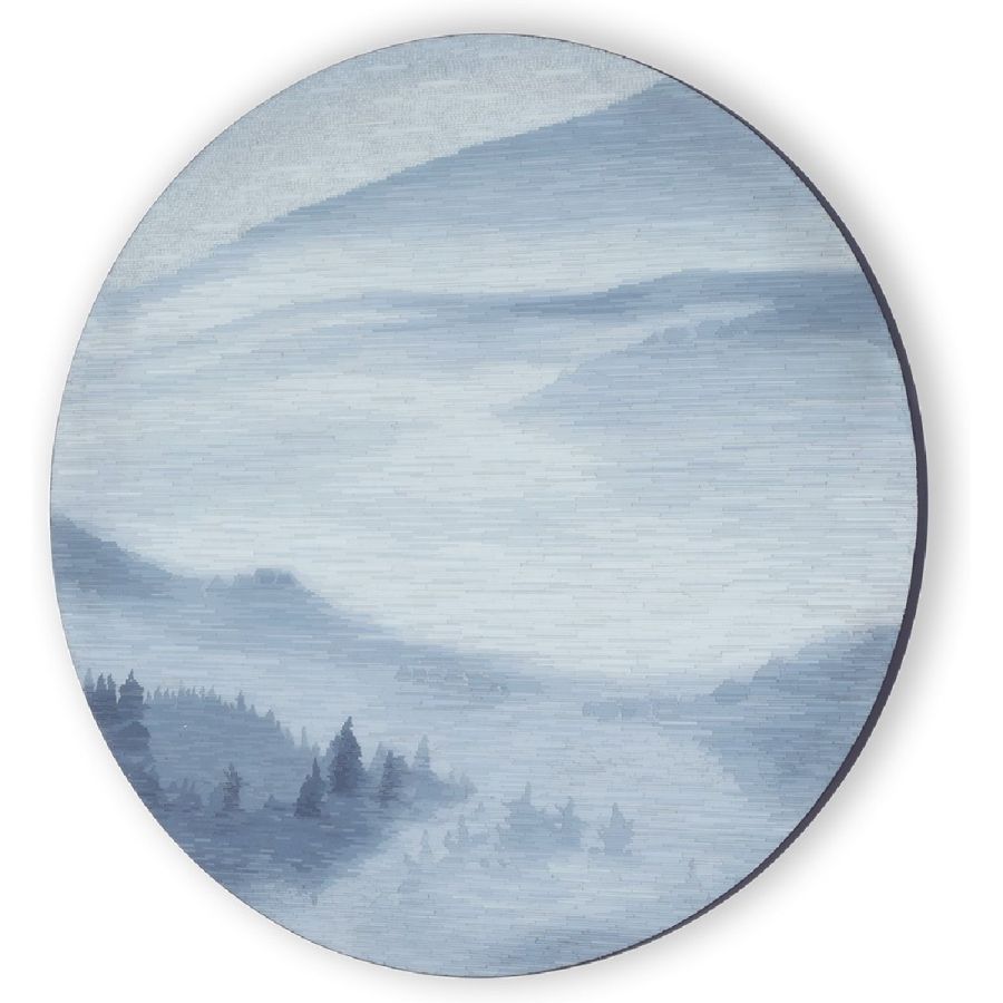 Ethereal, tranquil and transcendent, this spectacular circular mosaic is inspired by the view from the Buddhist shrine of Usnisa Palace on Niushou Mountain. Made with around 20,000 glass tiles, all hand cut and positioned by master craftsmen, this is a truly exceptional artwork.