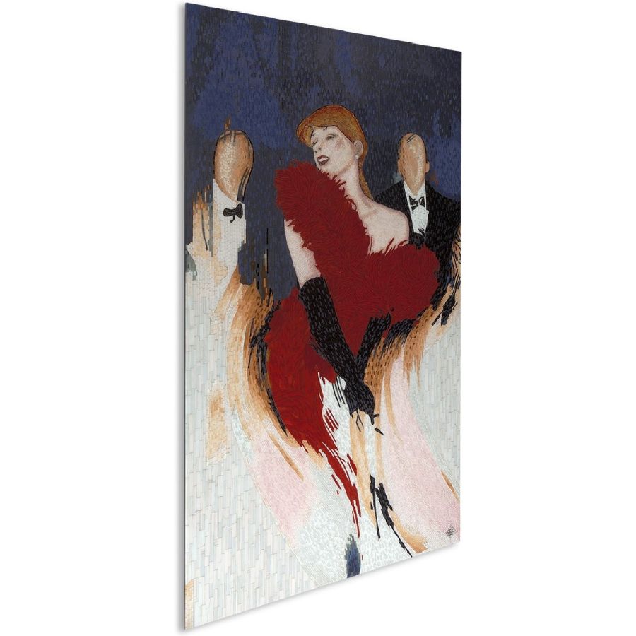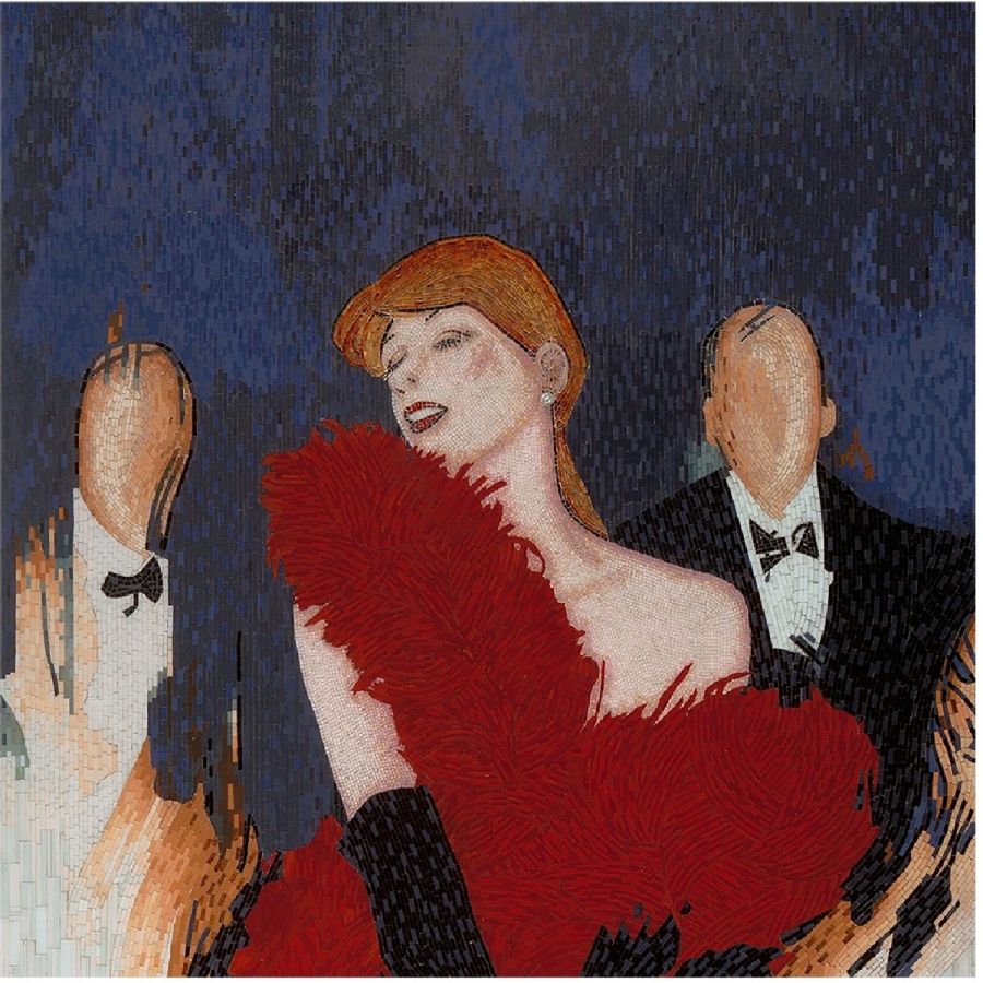 Imagine a jigsaw consisting of thousands of hand-crafted pieces, each cut to size, painted in its own unique color ... that is the magnitude of the work and skill required to create these masterpieces which take over two months to create by a team of six. This mosaic captures the gaiety, passion and energy of Paris’s burlesque nightlife.